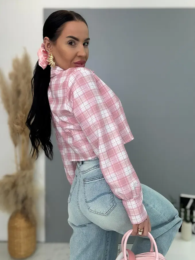 Károvaná crop košeľa s dlhým rukávom LEA