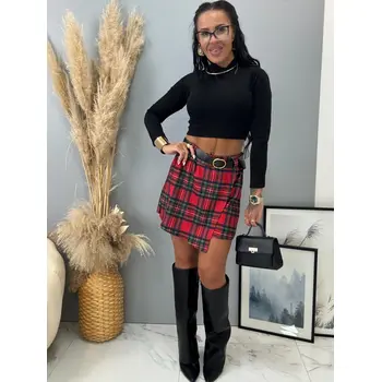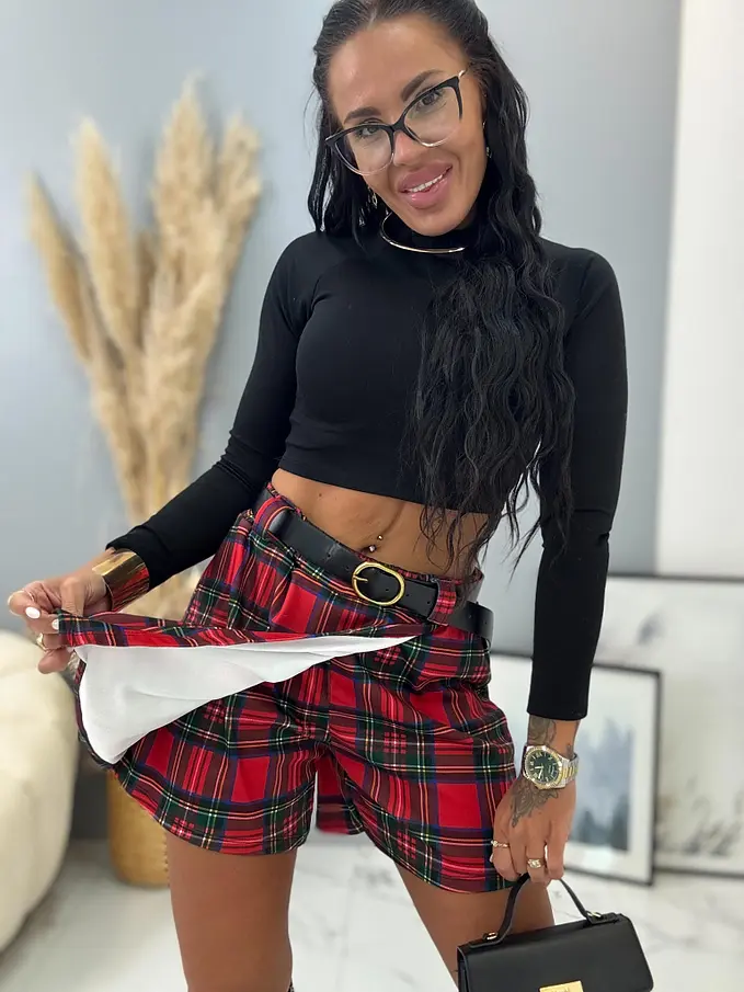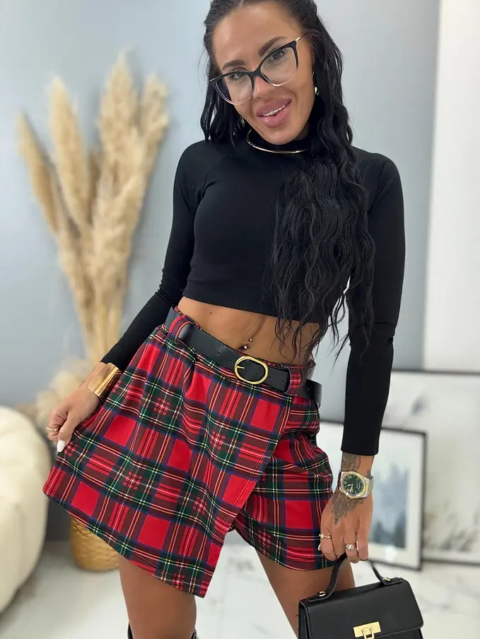 Károvaná nohavicová sukňa s opaskom DAIVA+