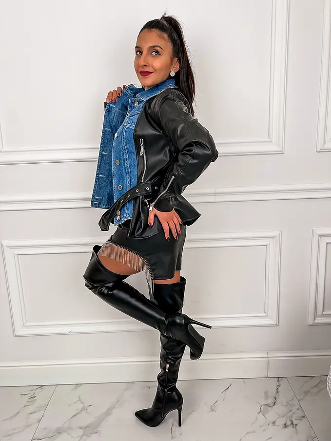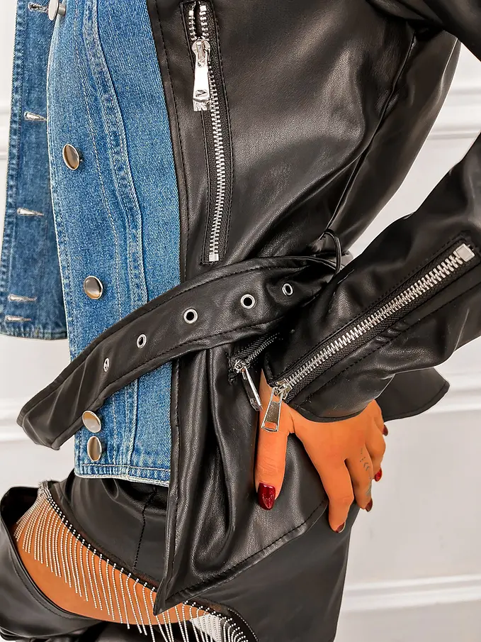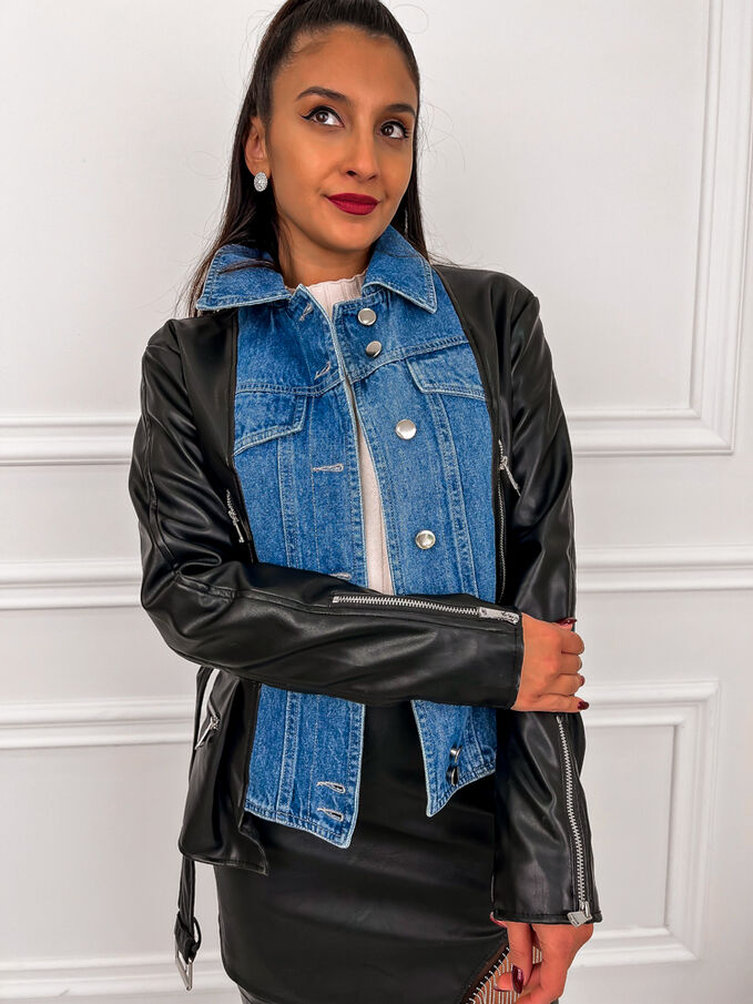 Kombinovaný koženkový kabát s opaskom LIANA+