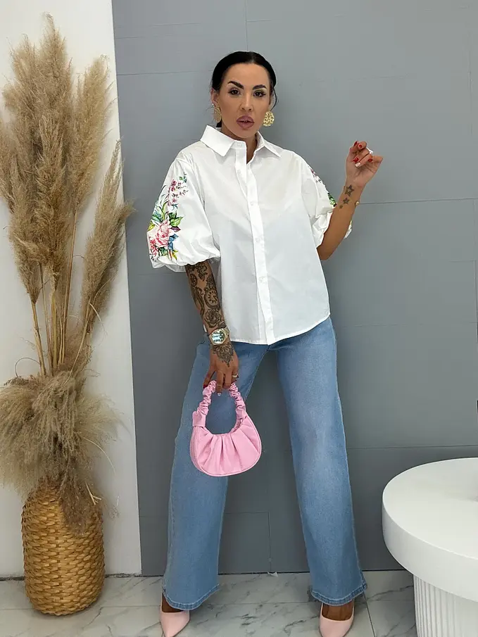Košeľa s krátkym rukávom s kvetinovým vzorom ALINA