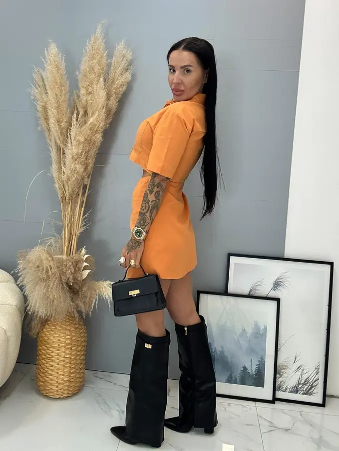 M - obvod hrudníka 88 cm, obvod pása 68 cm, dĺžka rukávov 24 cm, dĺžka 81 cm,