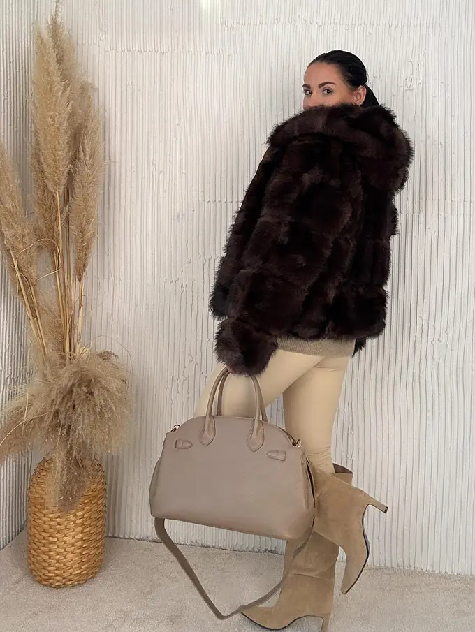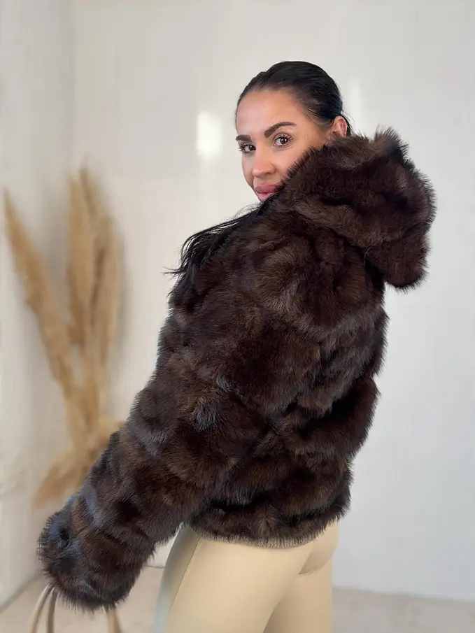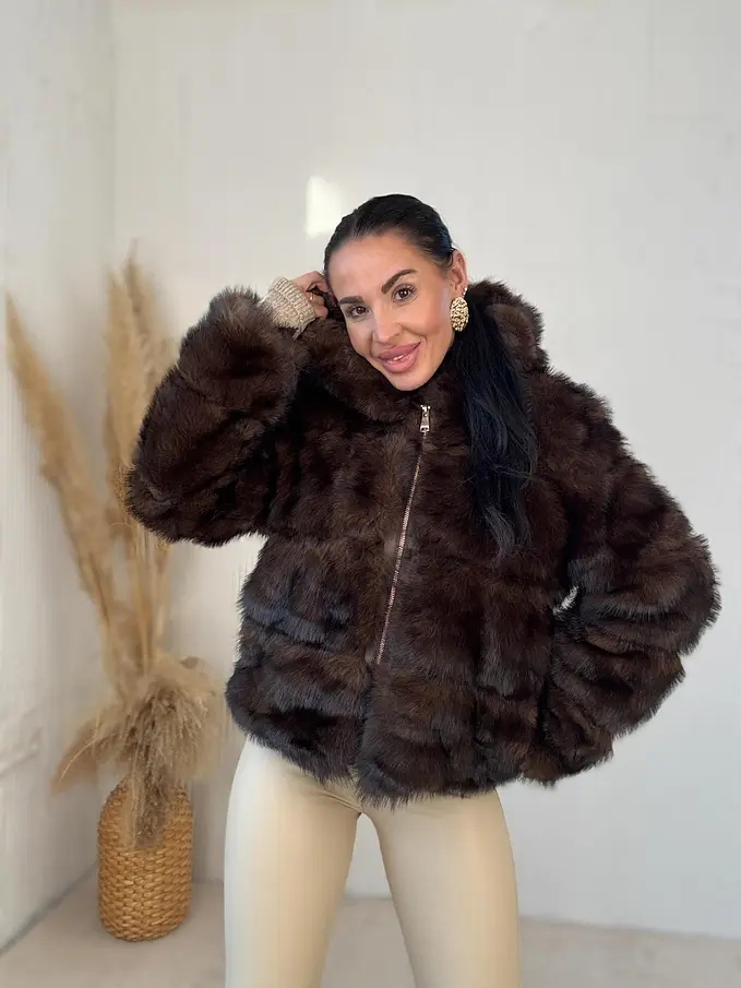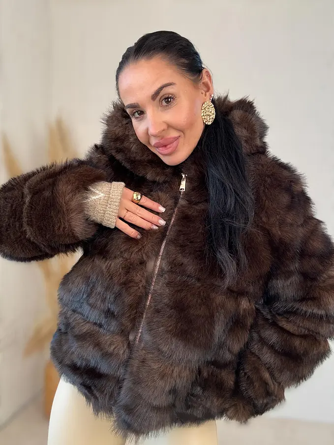 Premium kvalita. Materiál nie je elastický. Kabát sa zapína na zips. Kapucna je neoddeliteľná. Zips v zlatej farbe.