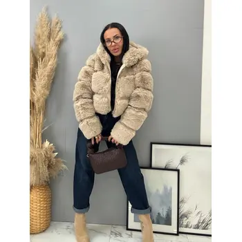 Koženková kožušinová bunda s kapucňou GIANNA+