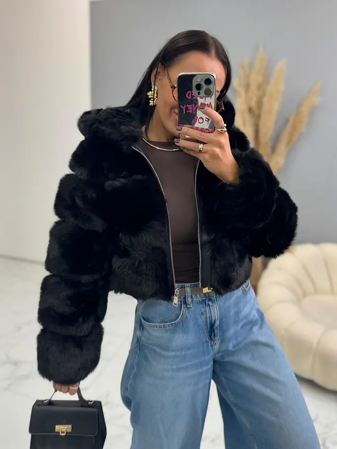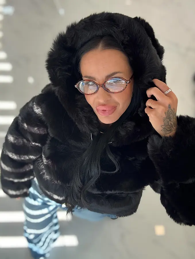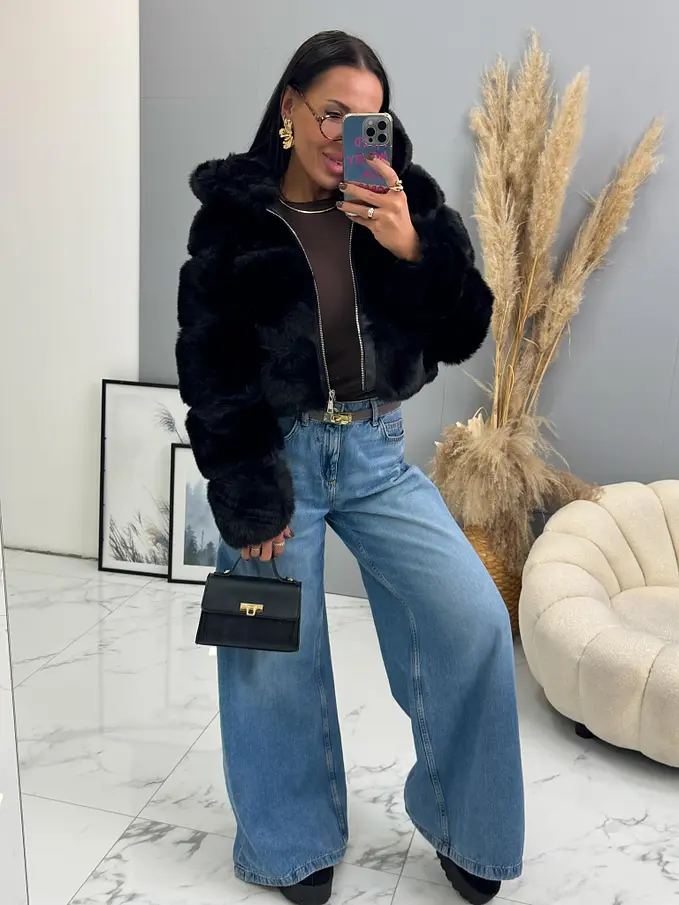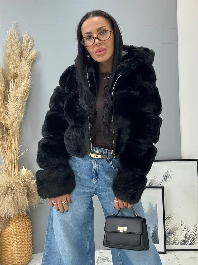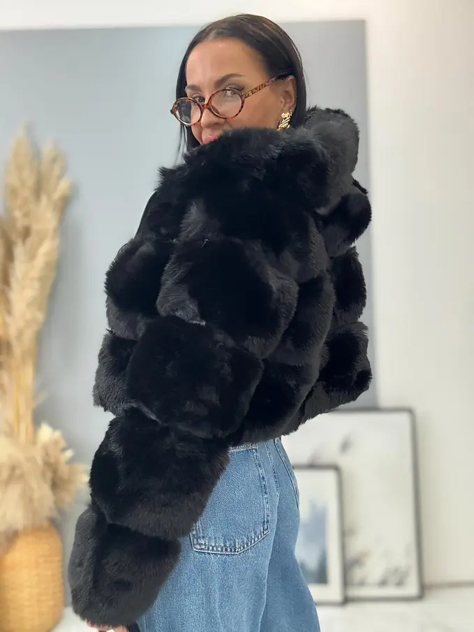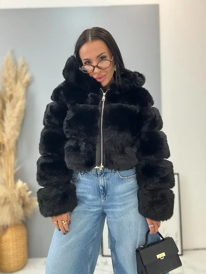 Koženková kožušinová bunda s kapucňou GIANNA+