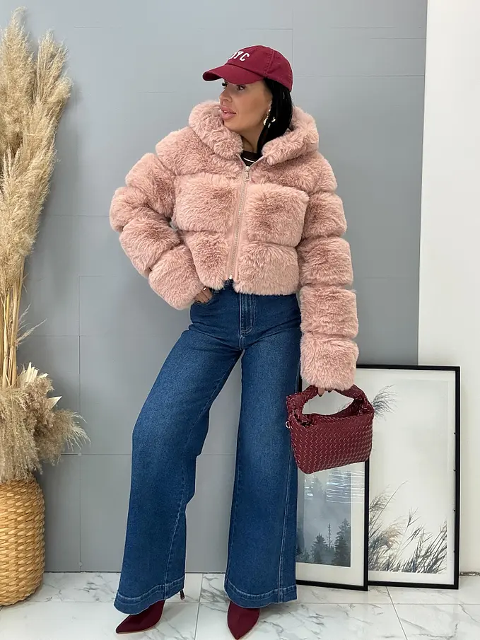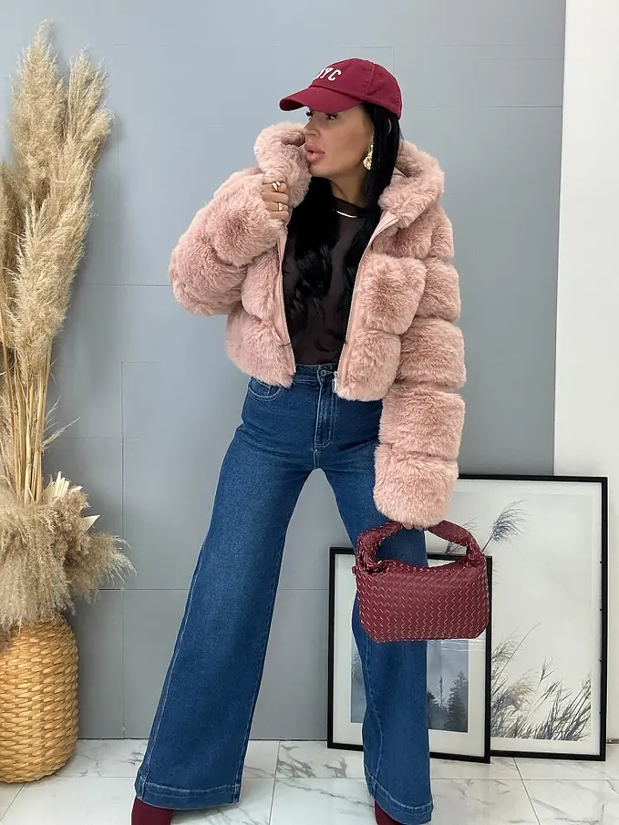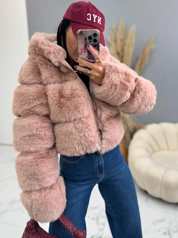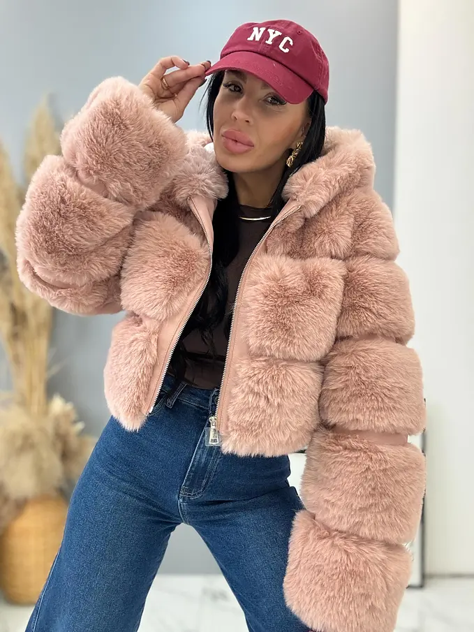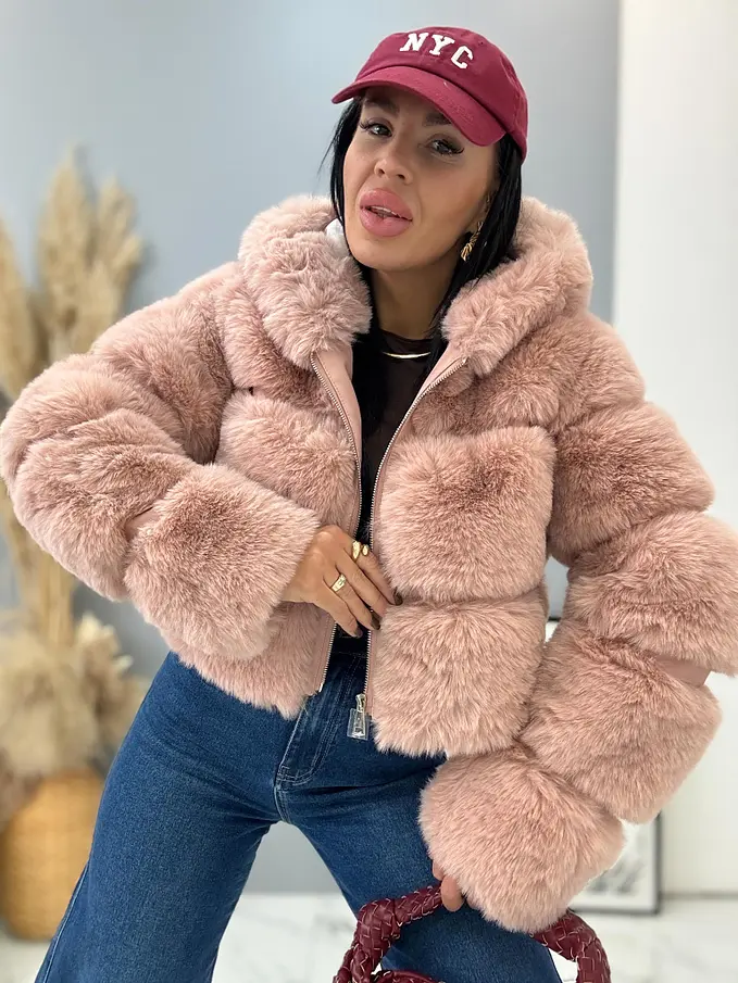 Koženková kožušinová bunda s kapucňou GIANNA+