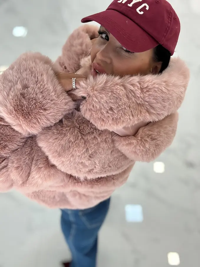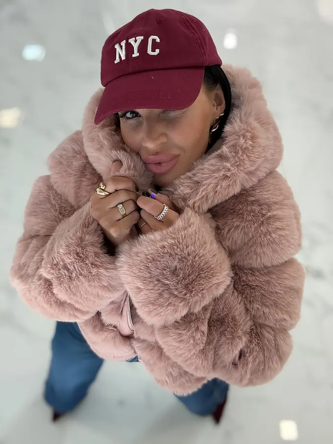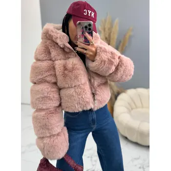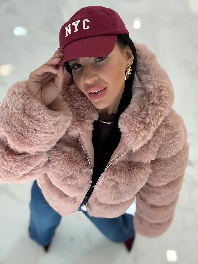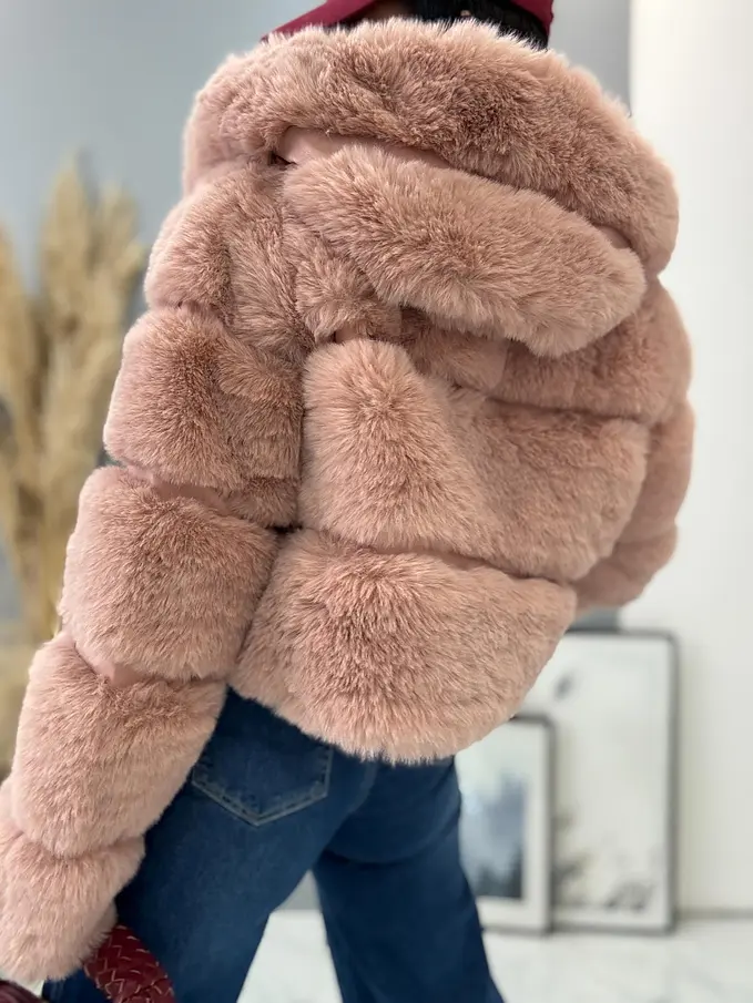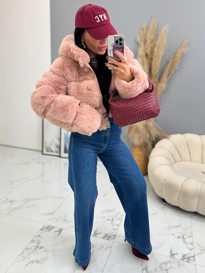 Koženková kožušinová bunda s kapucňou GIANNA+