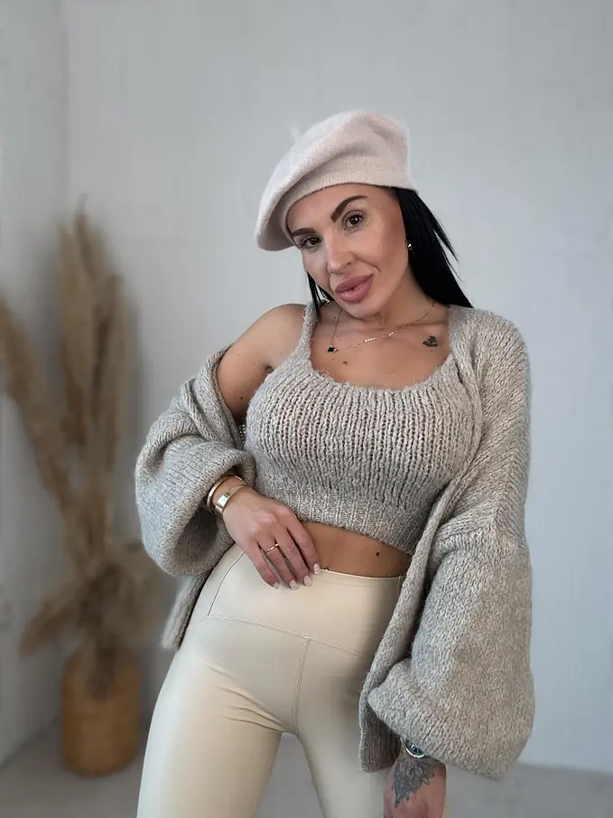 Modelka meria 164 cm a váži 57 kg. Nosí veľkosť M