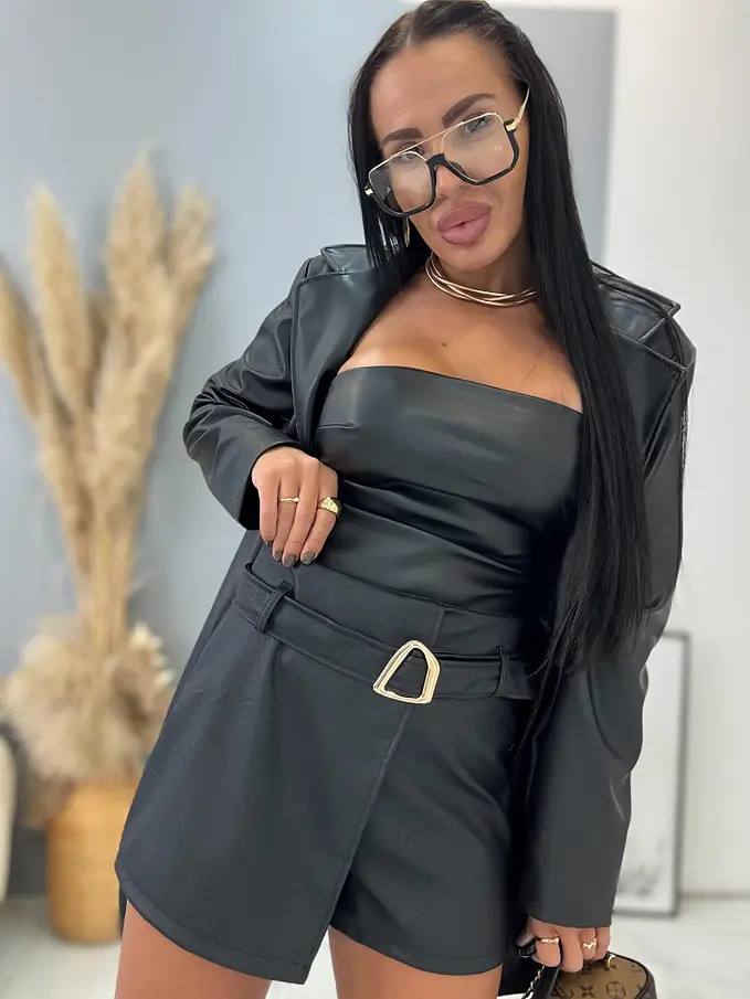 Sukňové nohavice z novej kolekcie. Materiál nie je elastický. So zipsom na zadnej strane. Ozdoba je zlatá.