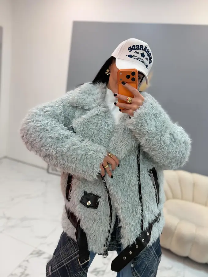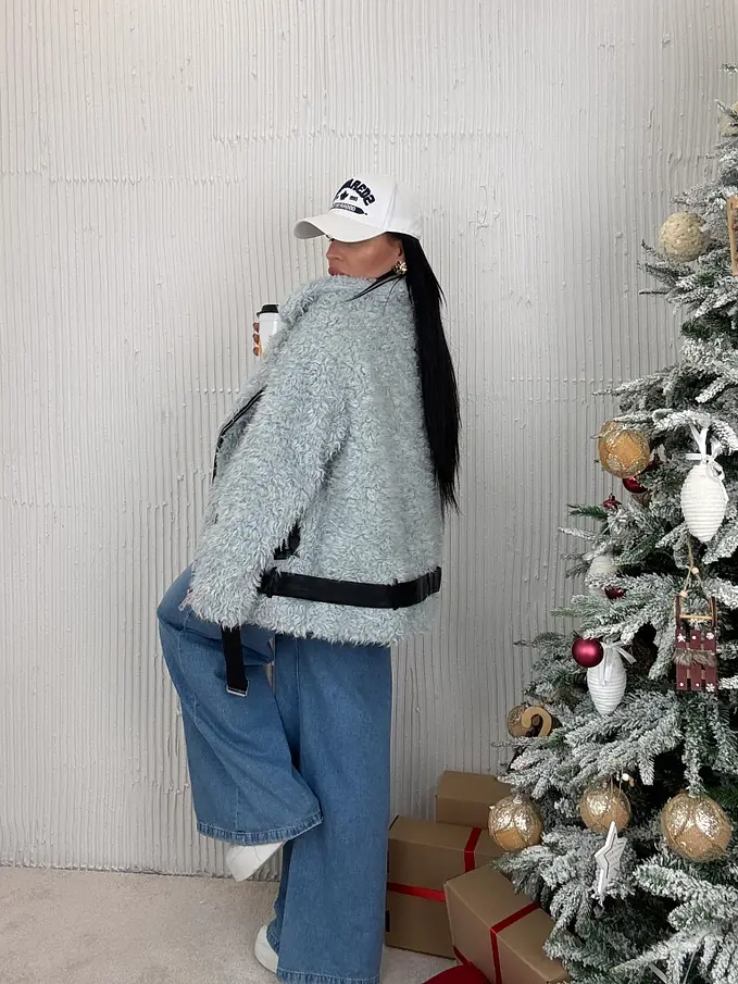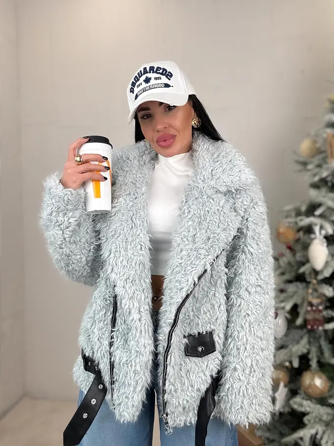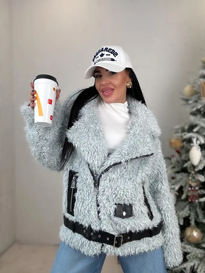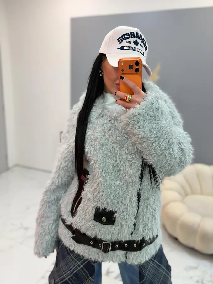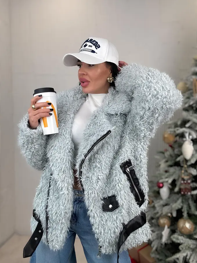 Kožušinková bunda s koženkovými detailmi POLETT+