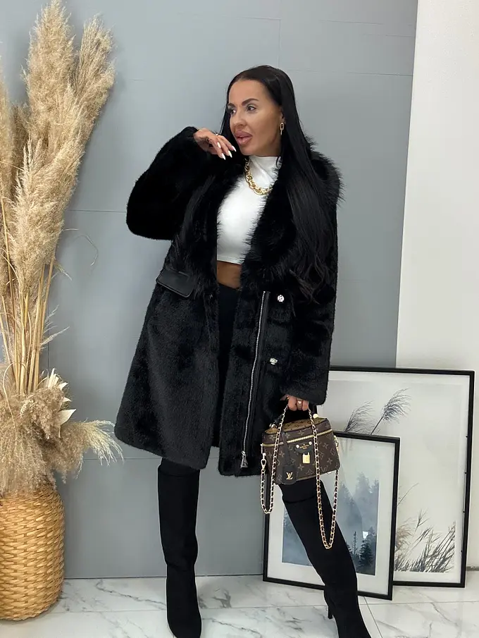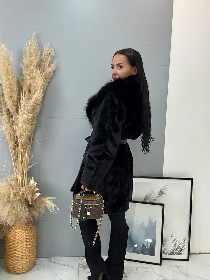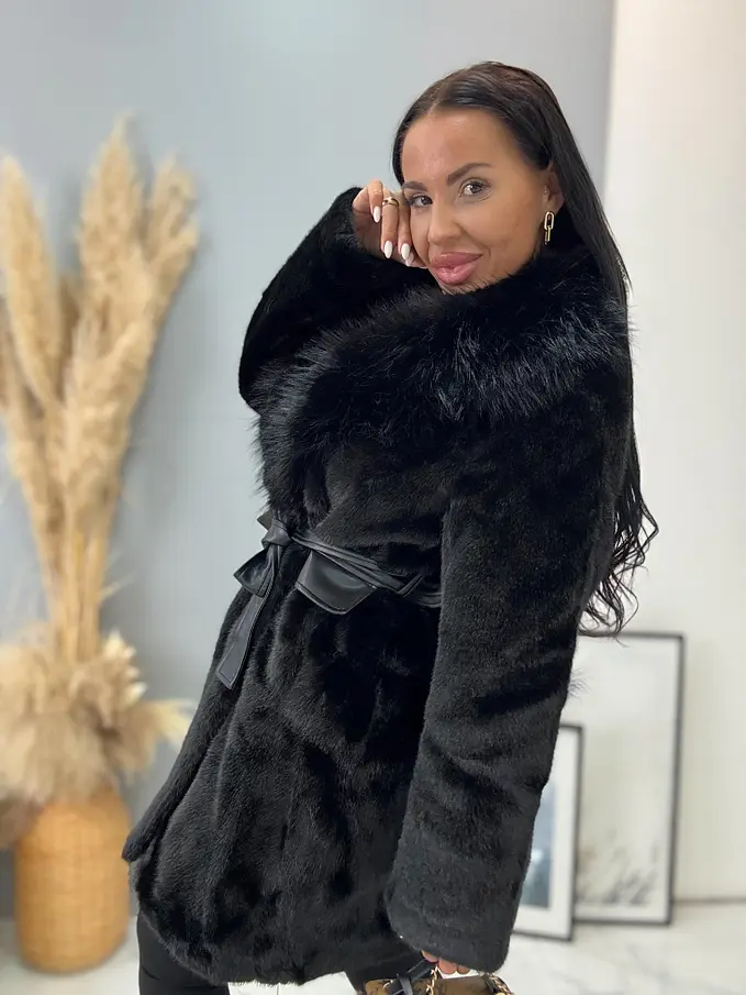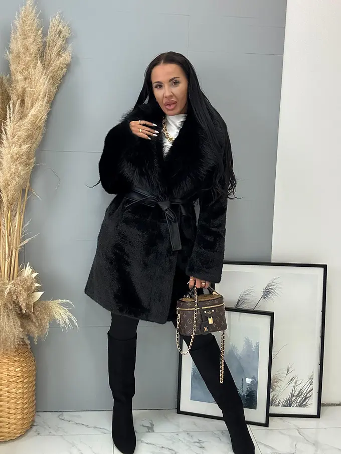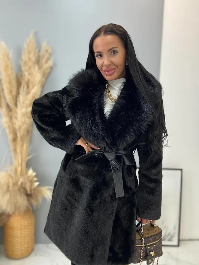 Kožušinová bunda s opaskom BRENIA