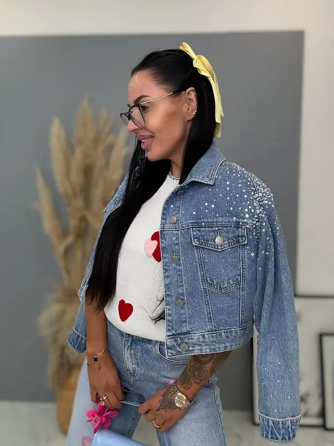 Krátky denim kabát s kamienkami EVELIN