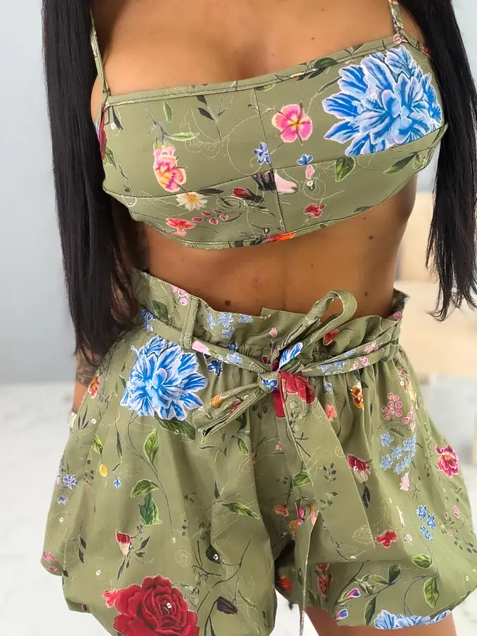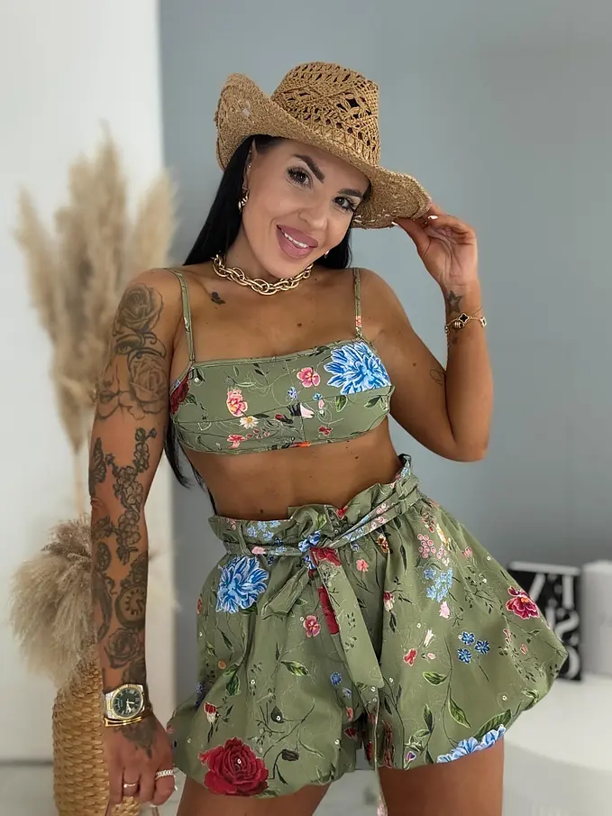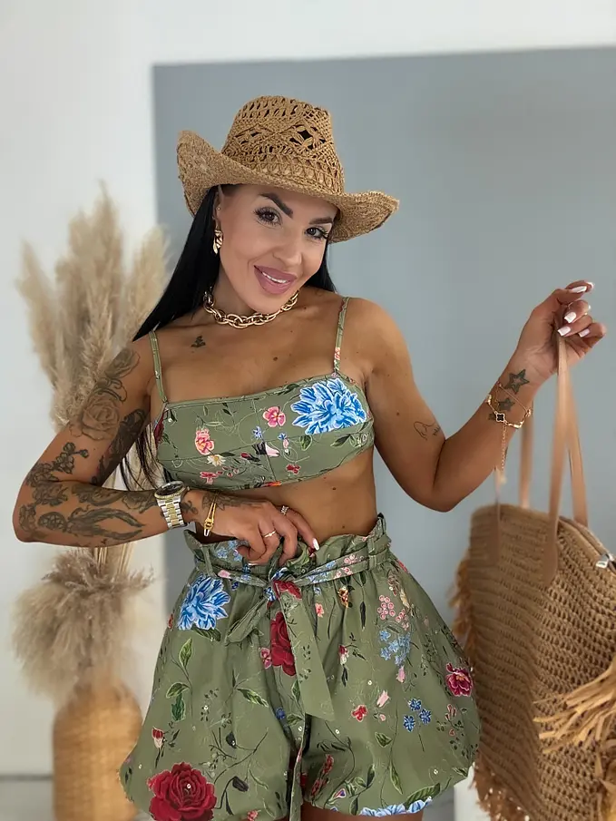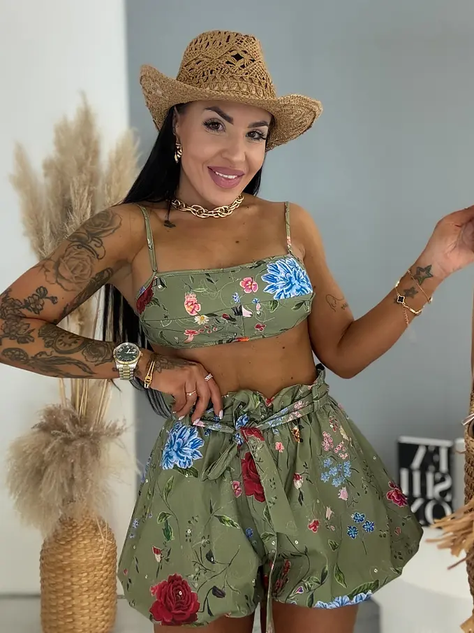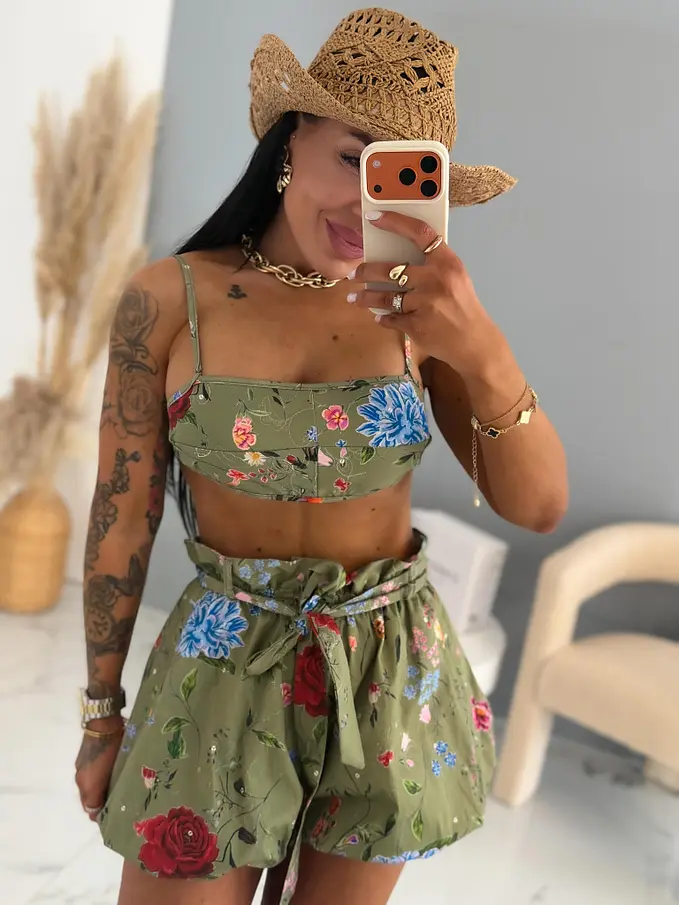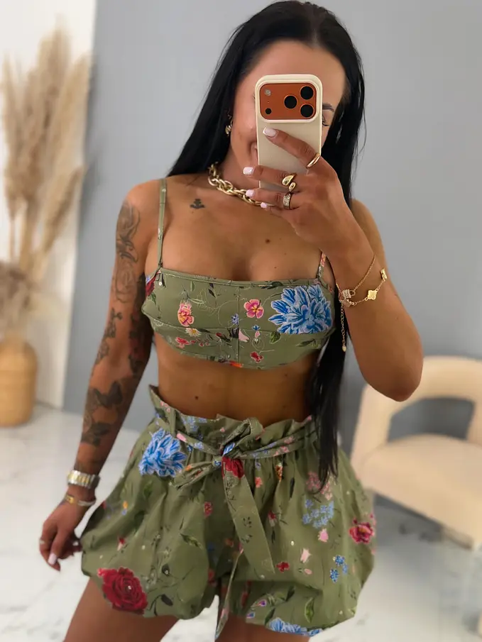 Kvetinové šortky v cibuľovom strihu s topom FLORE