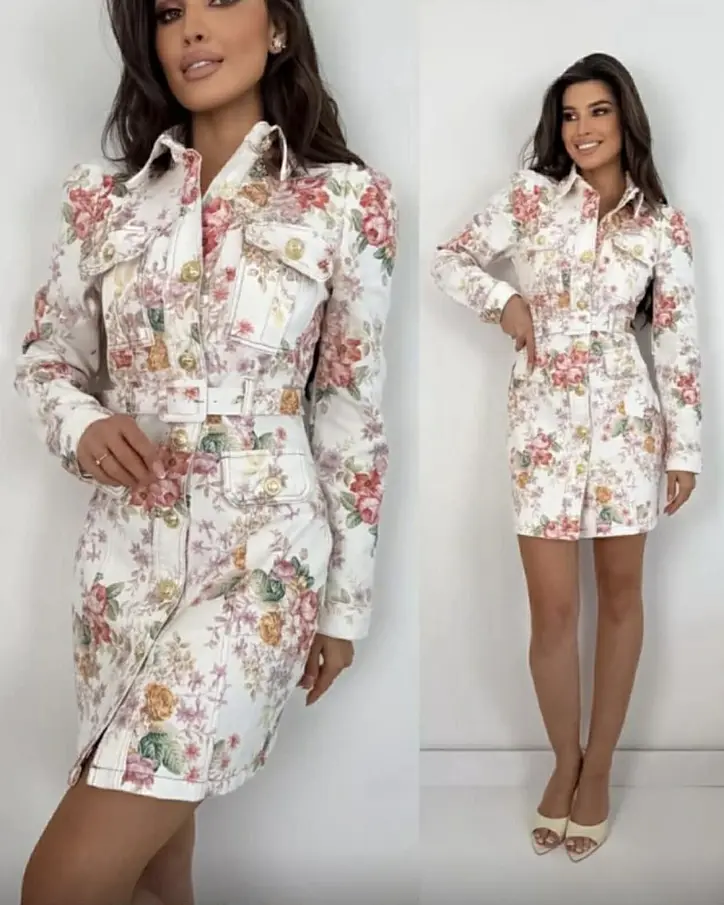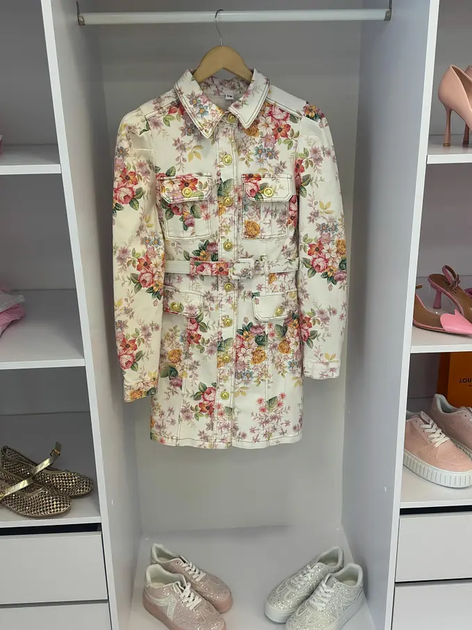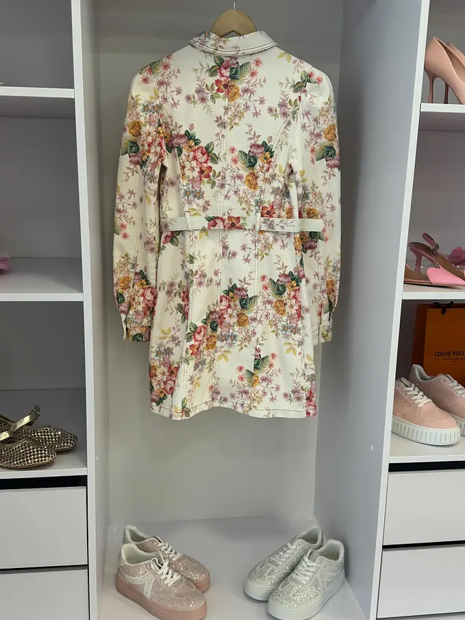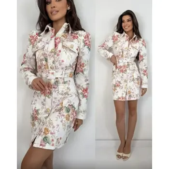 Prémiové šaty priamo z Francúzska. Kvetované rifľové šaty so zlatými gombíkmi a opaskom. Materiál je elastický.