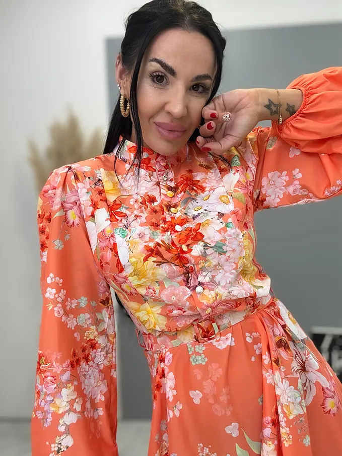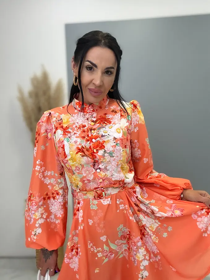 Kvetované šaty na gombíky s opaskom SUMMER