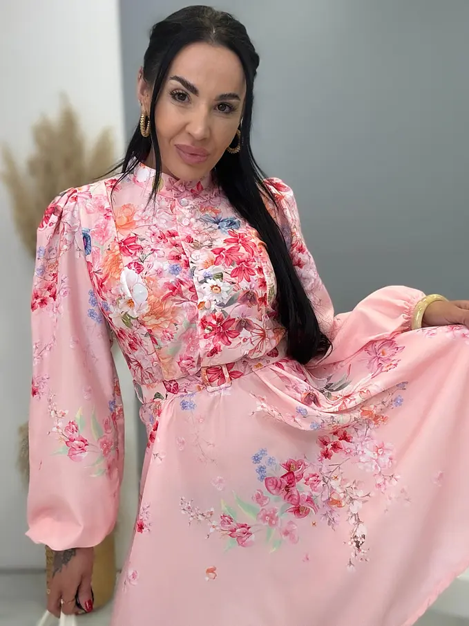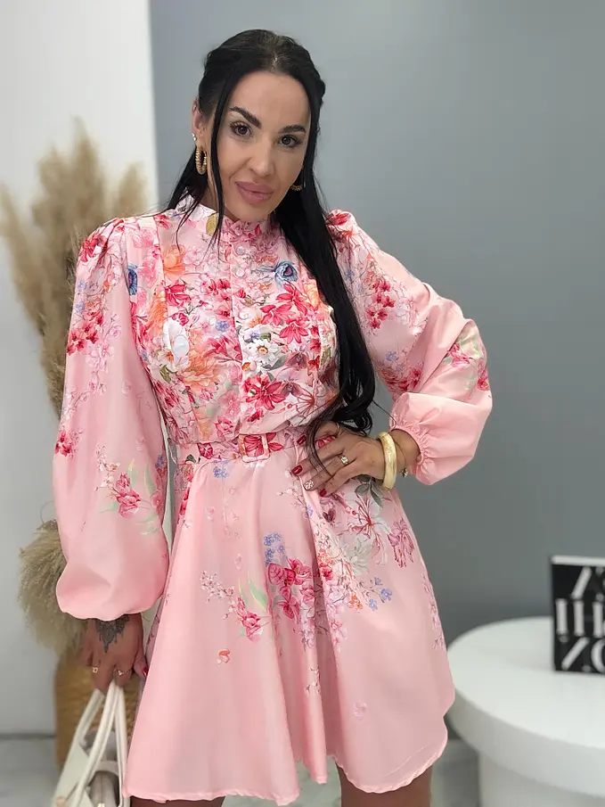 Kvetované šaty na gombíky s opaskom SUMMER