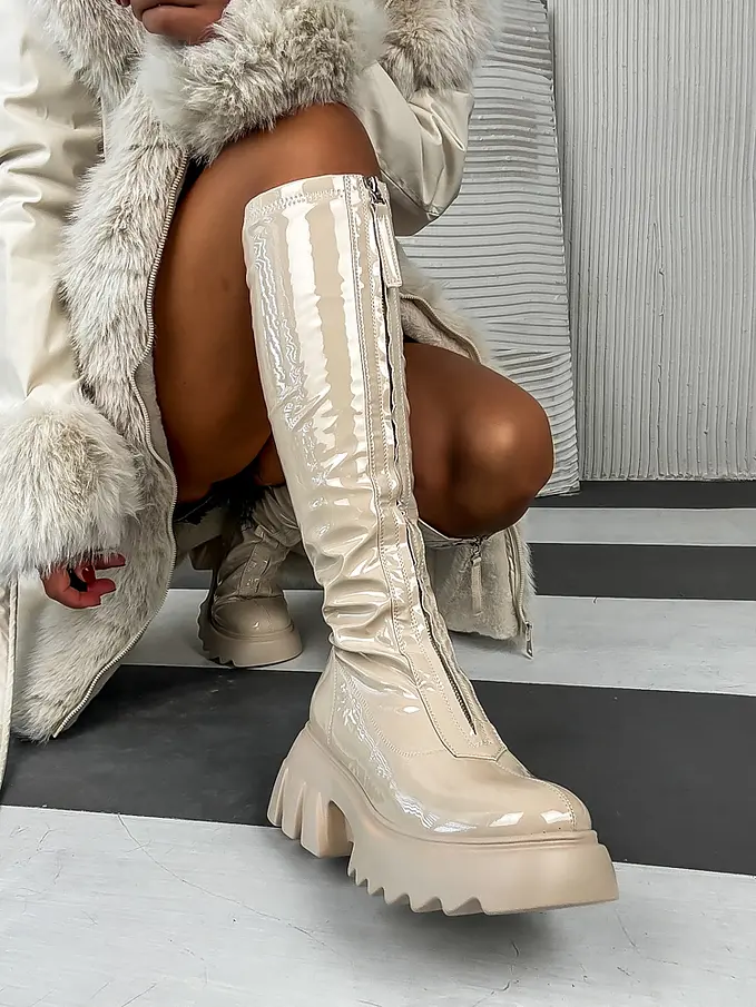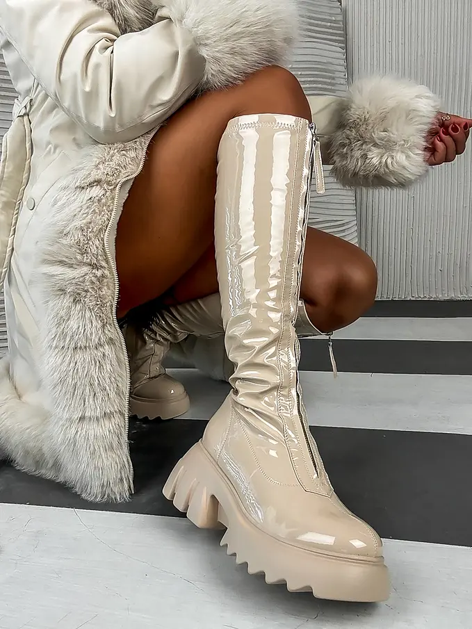 Štýlová aj v sychravom počasí? Čižmy perfektne doplnia napríklad slim džínsy a vestu z kožušinky.