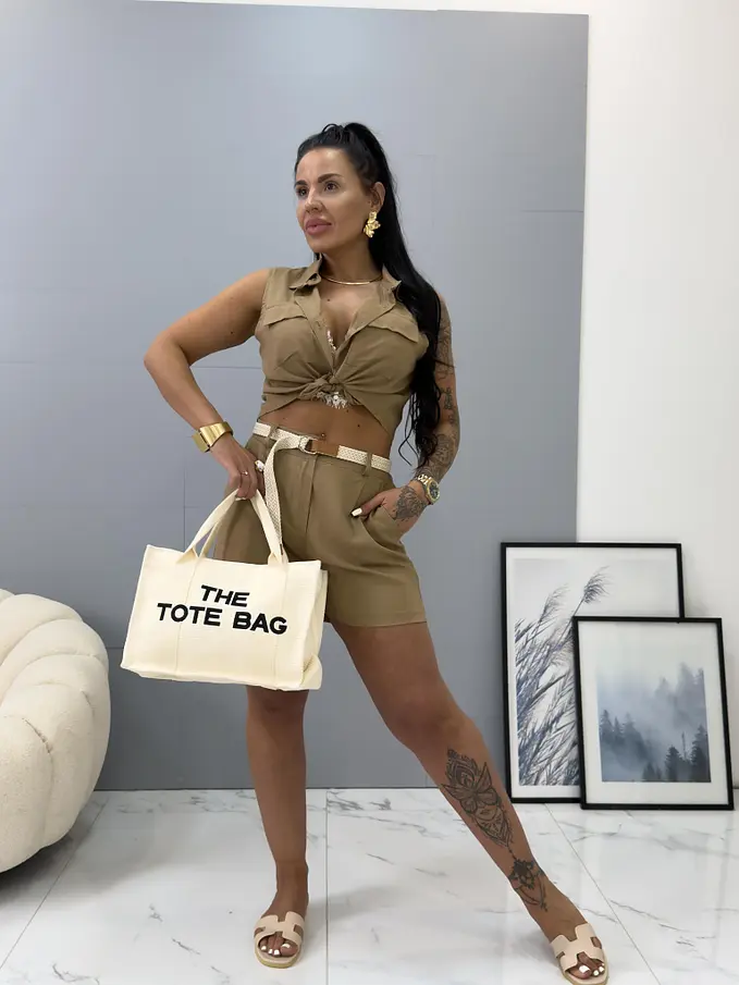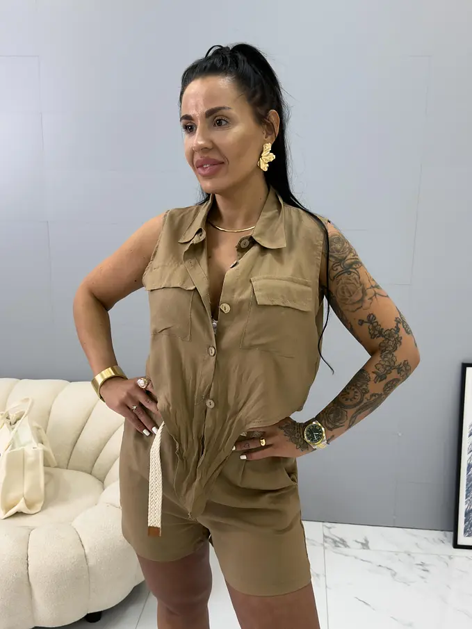 Dámsky komplet z novej kolekcie. Pozozstáva sa z topu a nohavíc. Nohavice majú gumený pás. Materiál je príjemný, ale nie elastický.