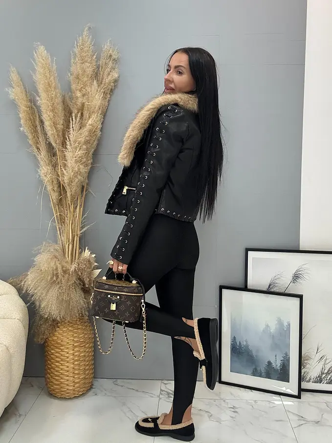 Modelka čiernovláska meria 164 cm a váži 57 kg. Nosí veľkosť S.