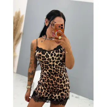Leopardí dvojdielny komplet skort s čipkou a topom KYRA