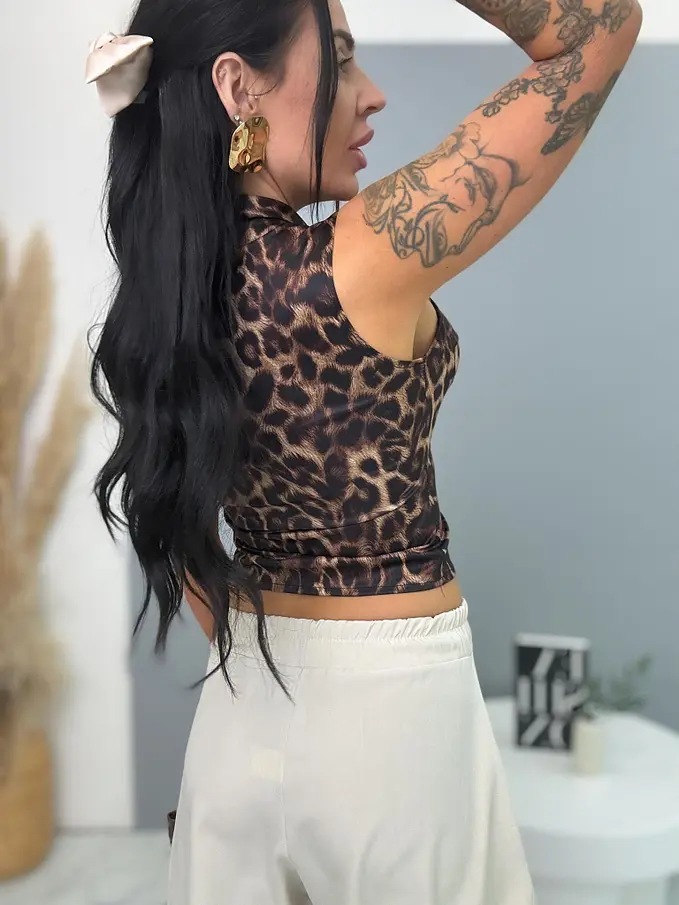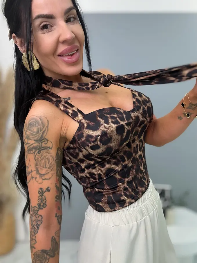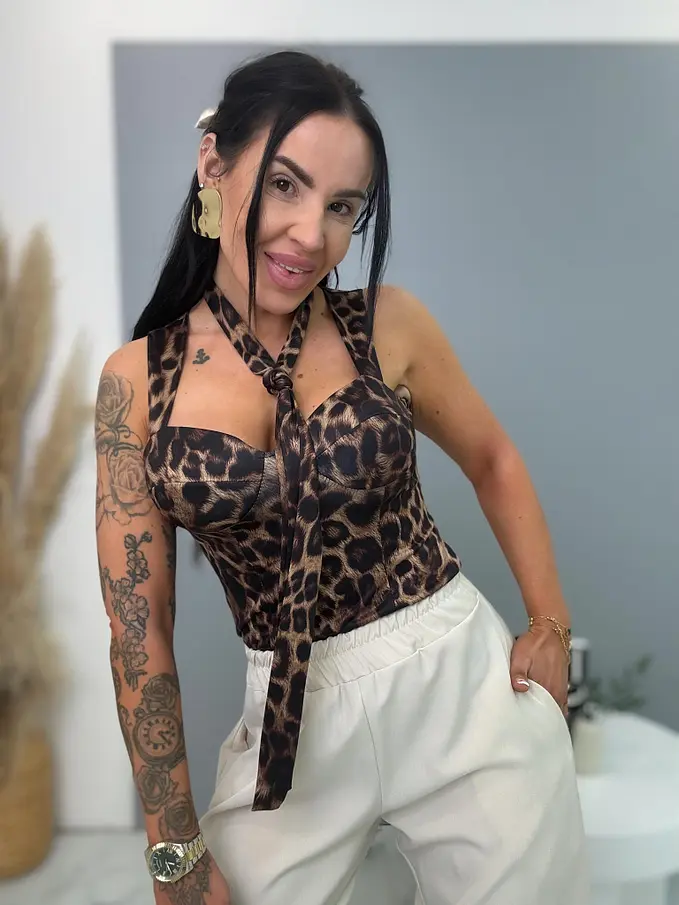 Leopardí top s vypchávkami a kravatou BRIANA
