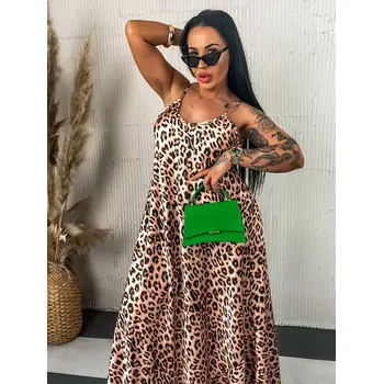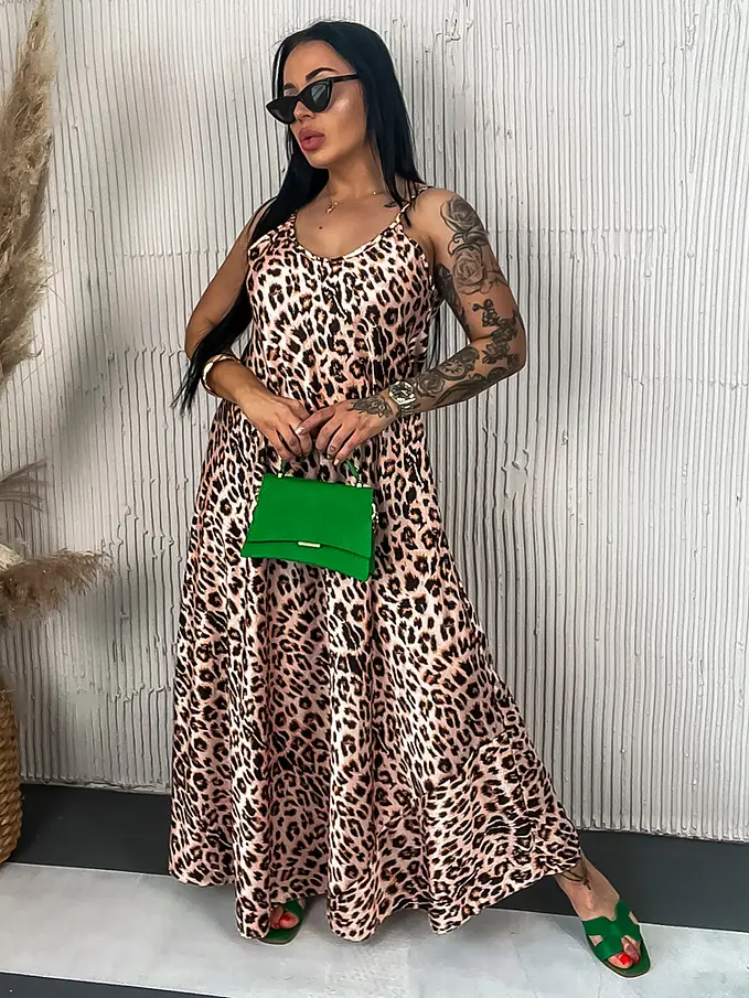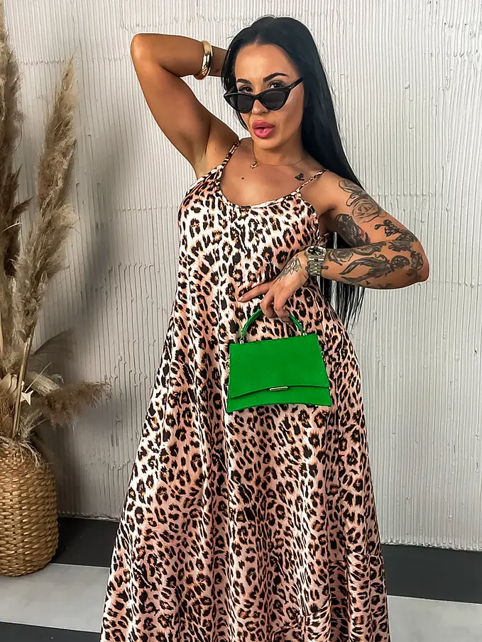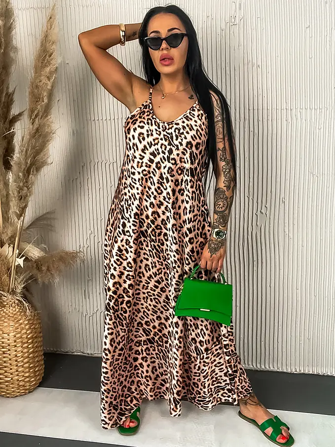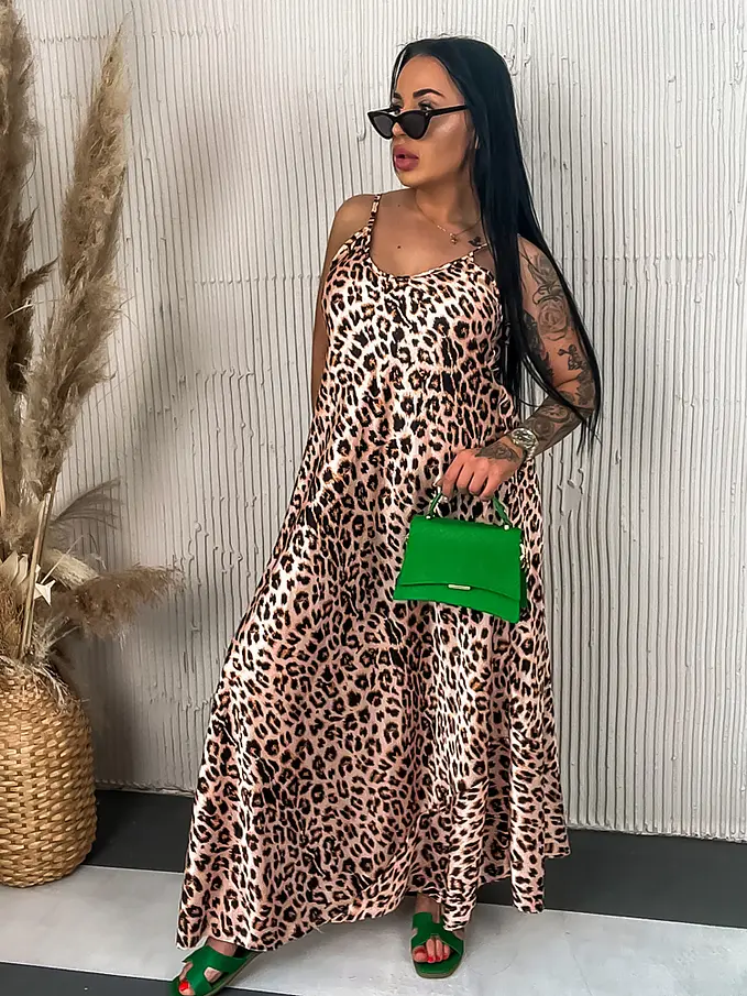 Leopardie dlhé saténové šaty LAYLAH