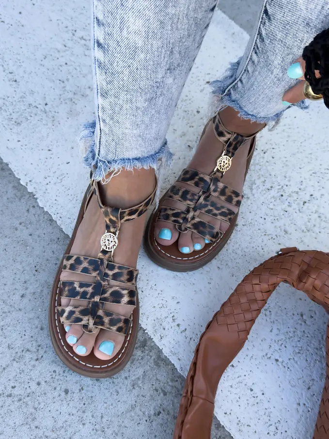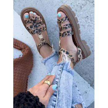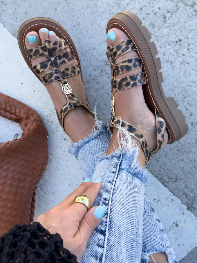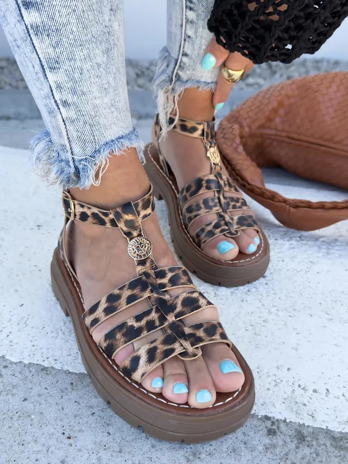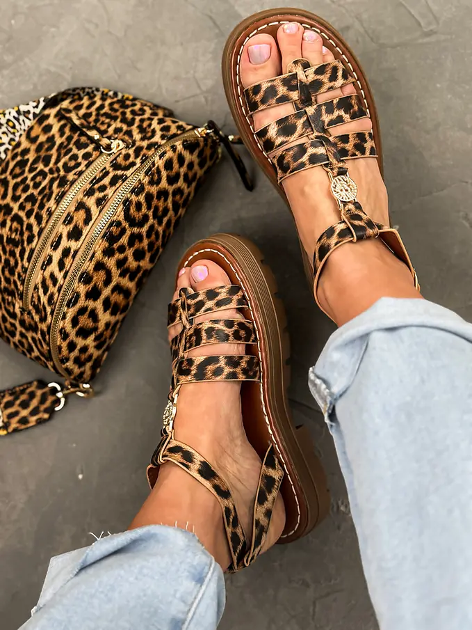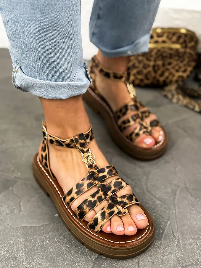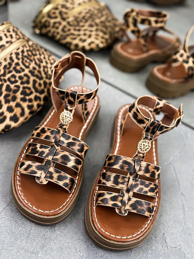 Leopardie sandále so zlatou ozdobou ROMANA-