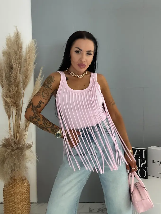 Prémiová kvalita z Talianska. Letné dámske tielko , vyrobené z pružného materiálu, ktorý poskytuje pohodlné a štýlové letné nosenie.