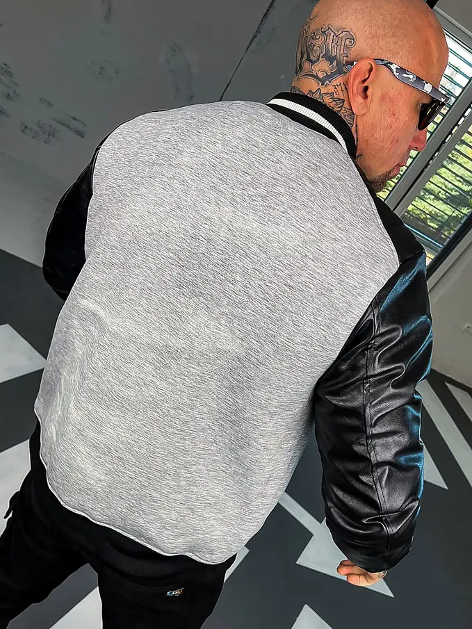 Ležérny baseballový bomber s koženkovými rukávmi+