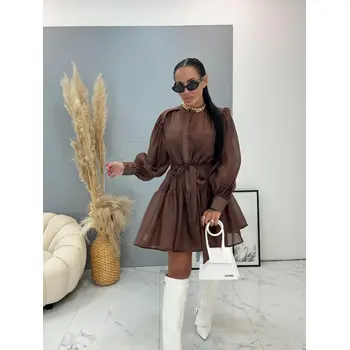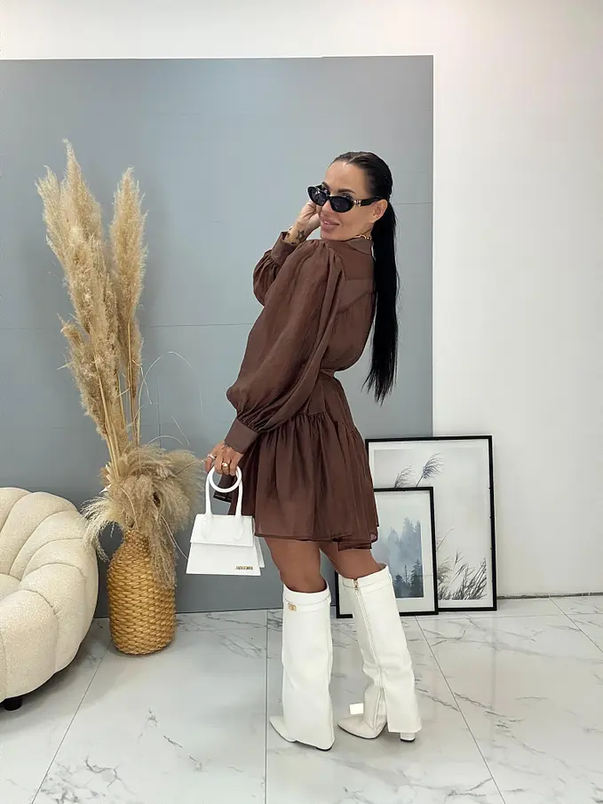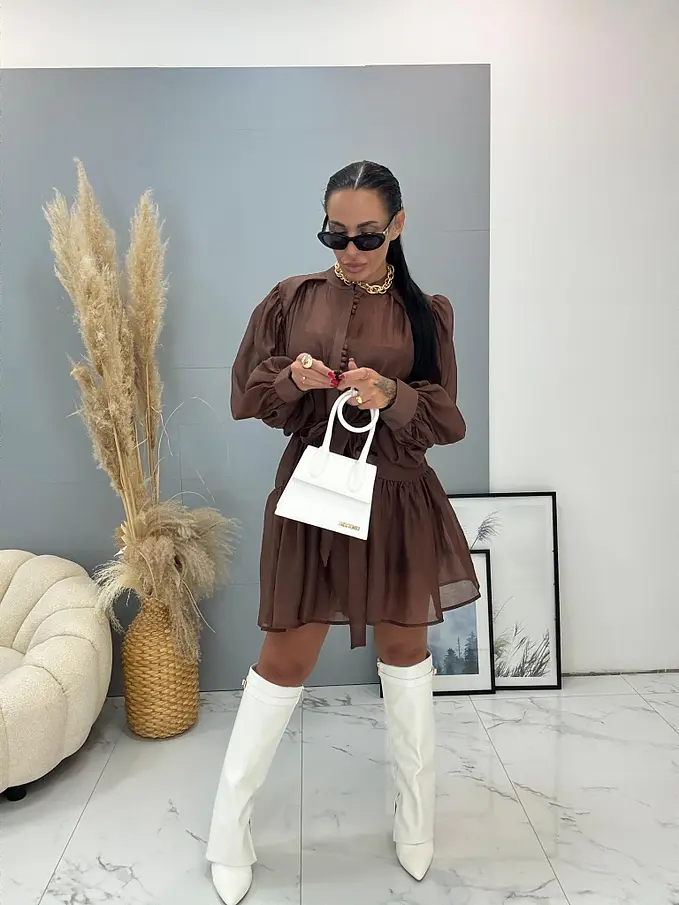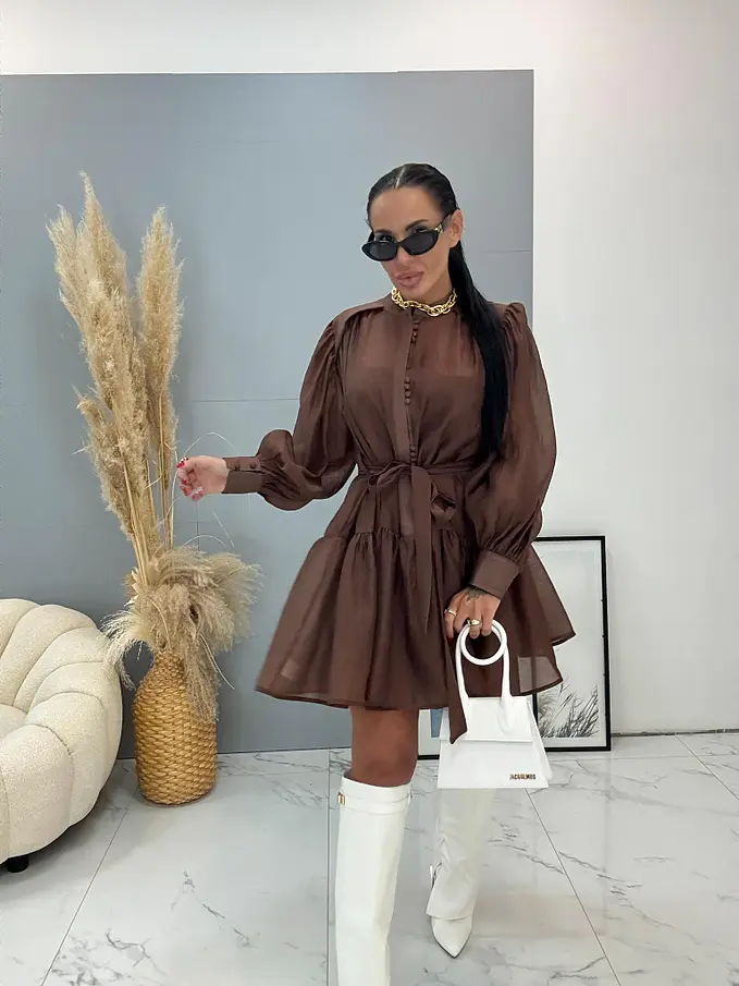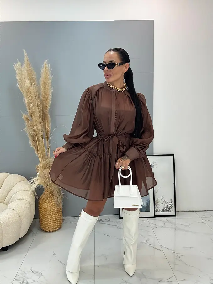 Premium kvalita. Lyocellové šaty s nadýchanými rukávmi a riasenou sukňou.