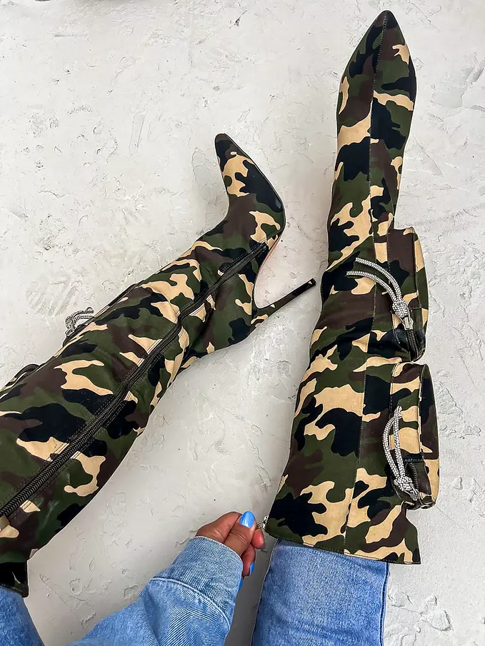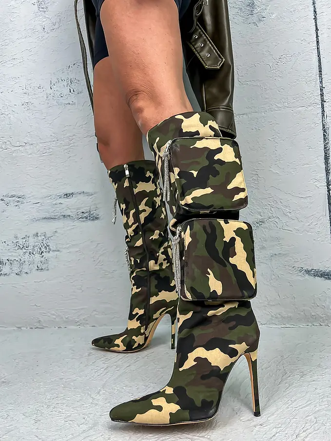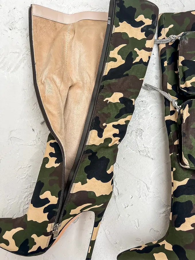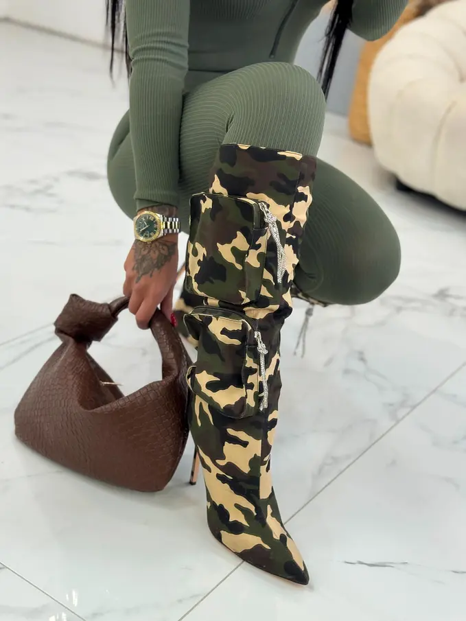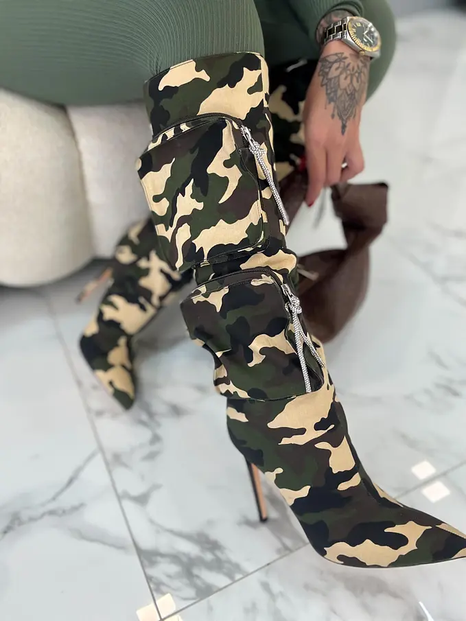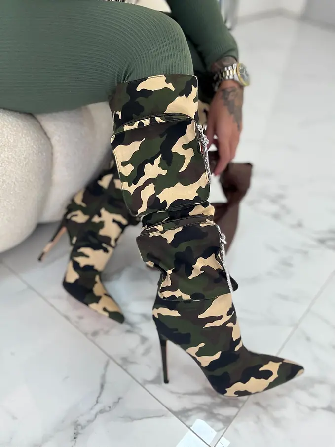 Maskáčové čižmy s kapsičkami. Čižmy sú mierne zateplené.