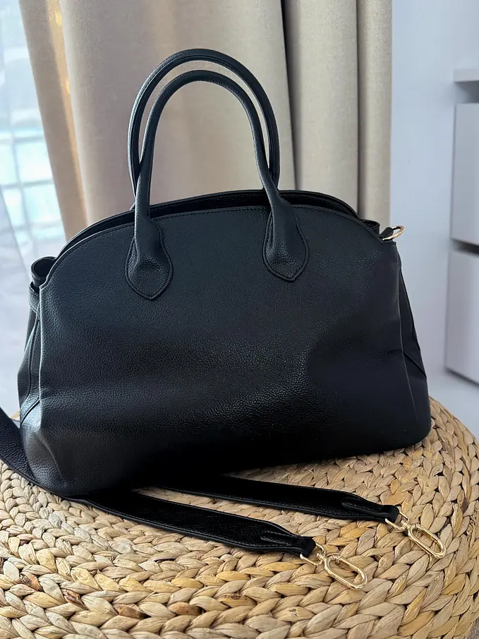 Extravagancia a elegancia v jednej kabelke. Vo vnútri je vrecko na uloženie drobností. Ozdoba má zlatú farbu.