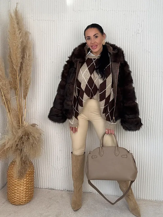 Extravagancia a elegancia v jednej kabelke. Vo vnútri je vrecko na uloženie drobností. Ozdoba má zlatú farbu.