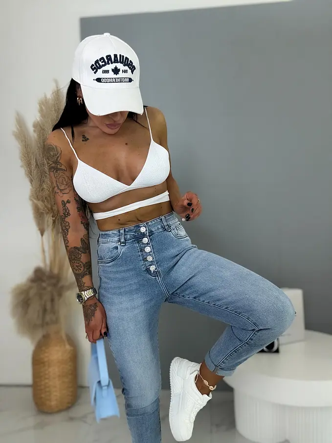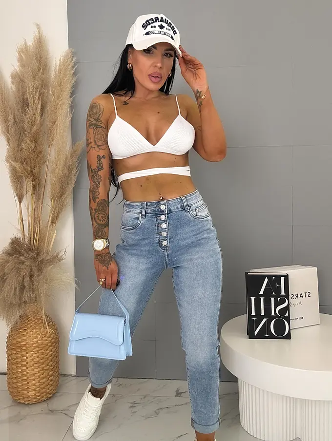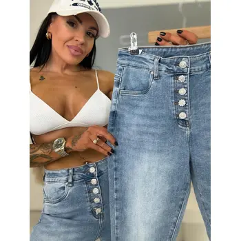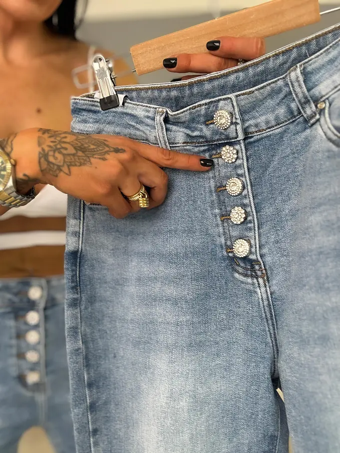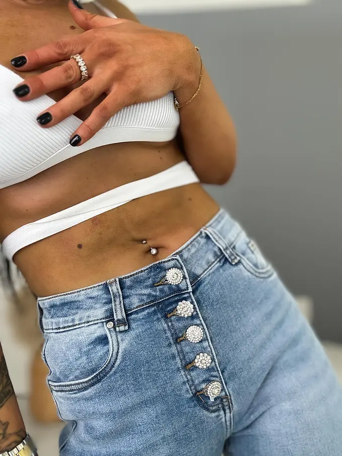 Mom fit rifle so zapínaním na trblietavé gombíky LUX