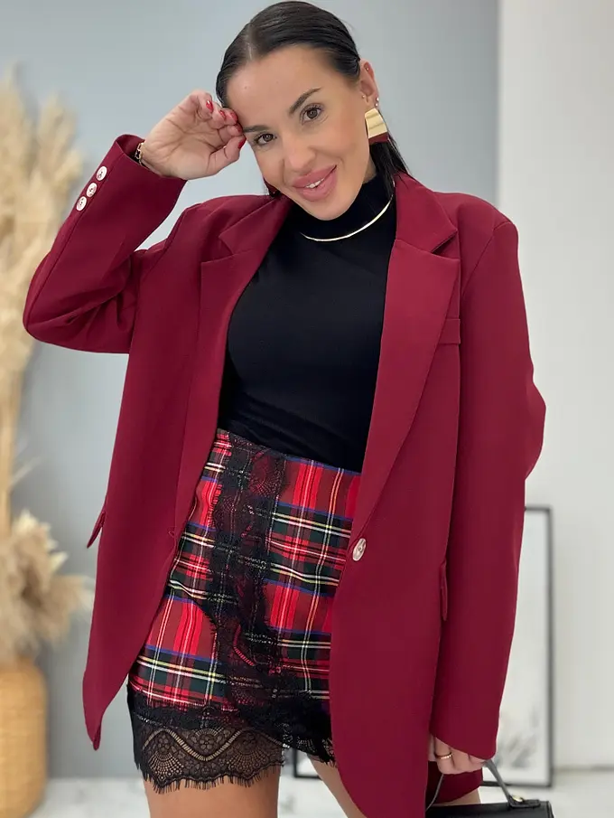 Dámske sako z príjemného materiálu. Materiál nie je elastický. Sako sa zapína na gombíky. Má vypchávky a je podšívané.