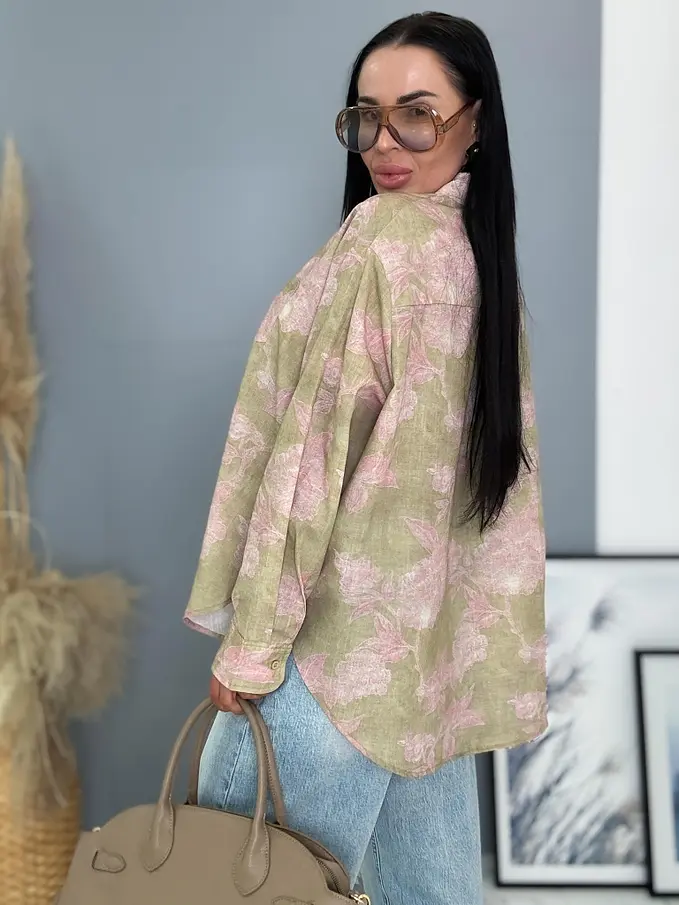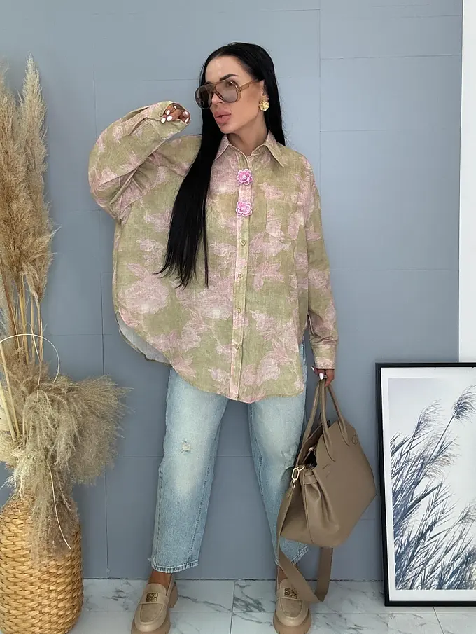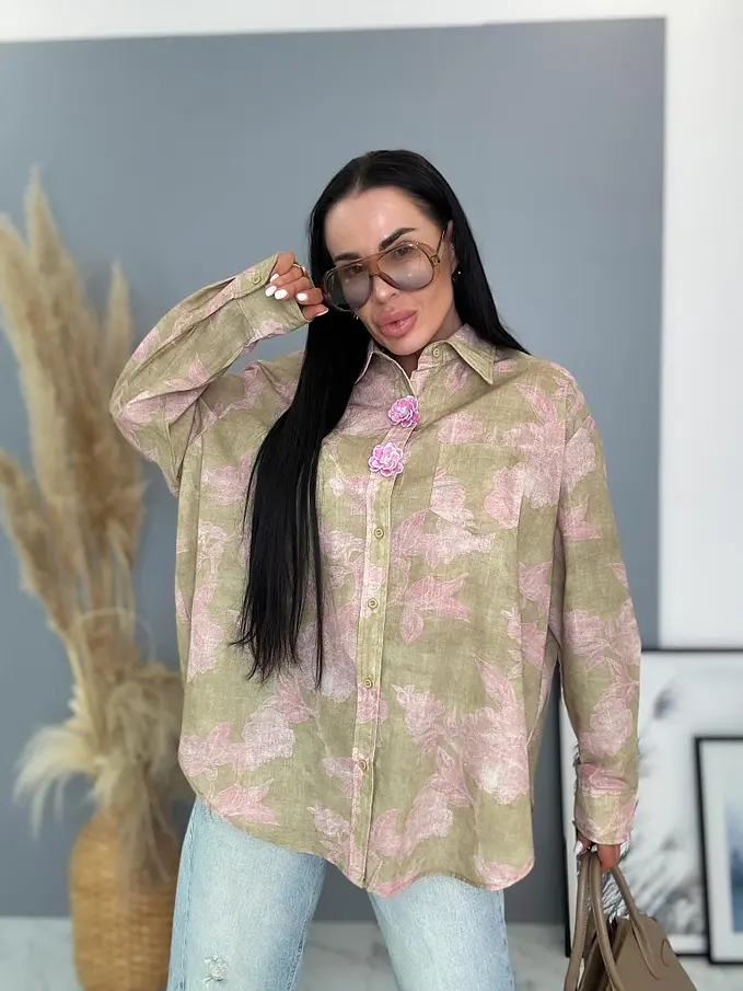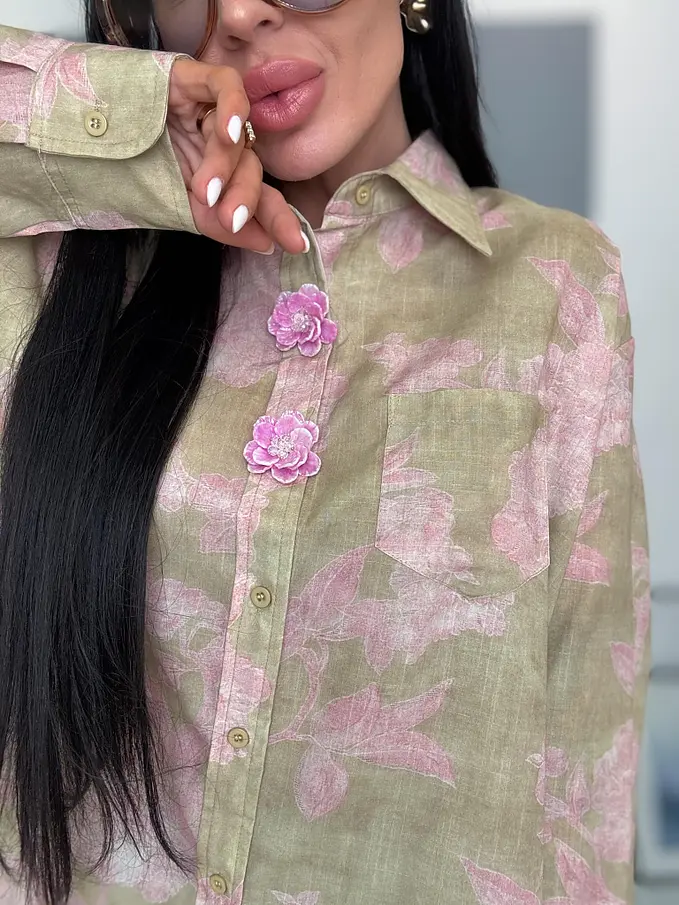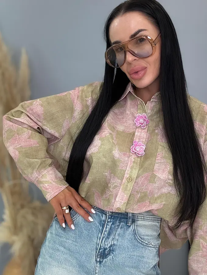 Oversized kvetinová košeľa s ozdobnou sponou FLOWER