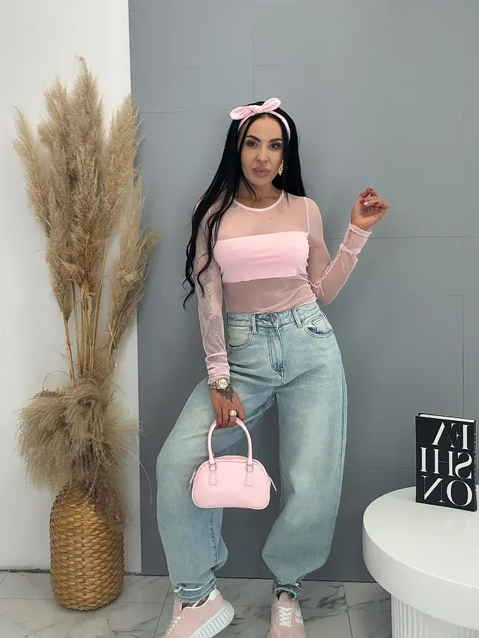 Pink šifónové body s dlhým rukávom RENA