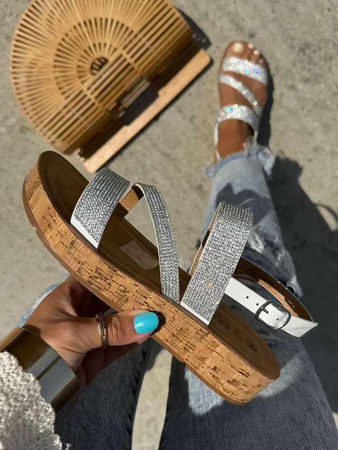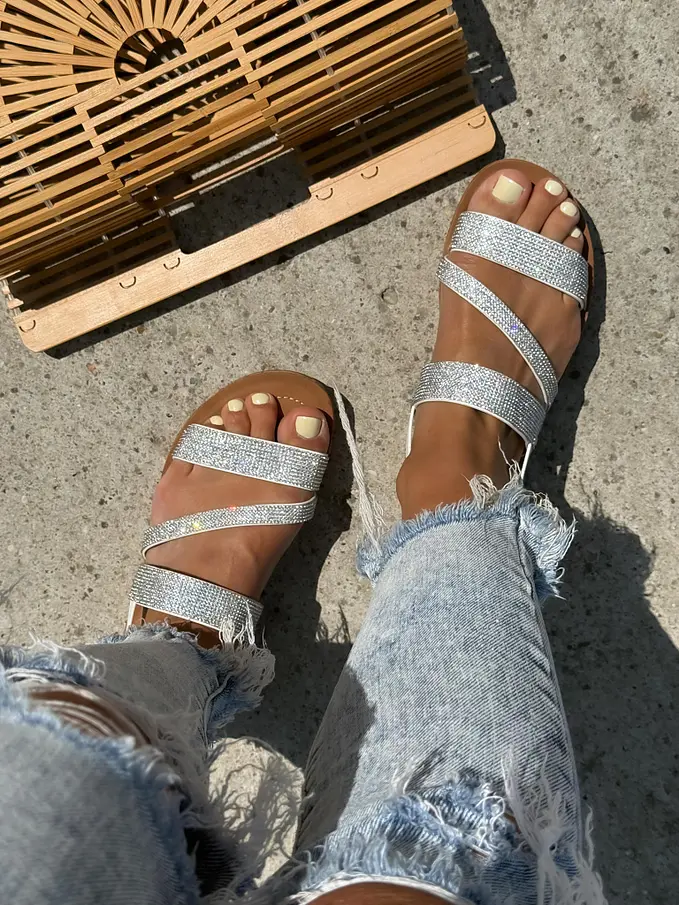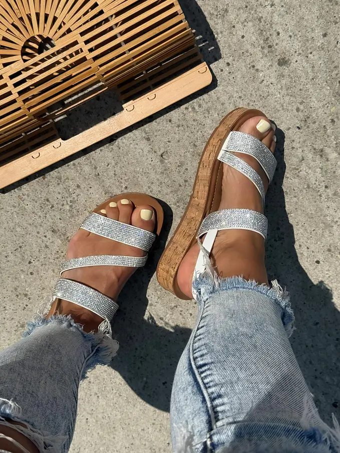 Pohodlné a extravagantné sandále na každú príležitosť. Kamienky majú striebornú farbu.