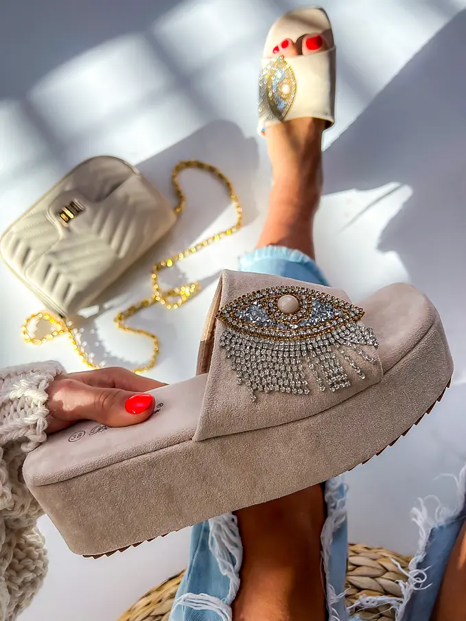 Elegantné dámske šľapky na každú príležitosť. Sú zdobené kamienkami.