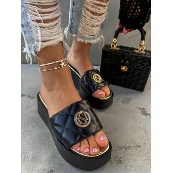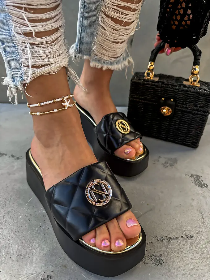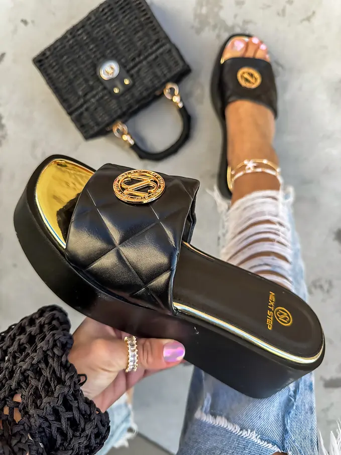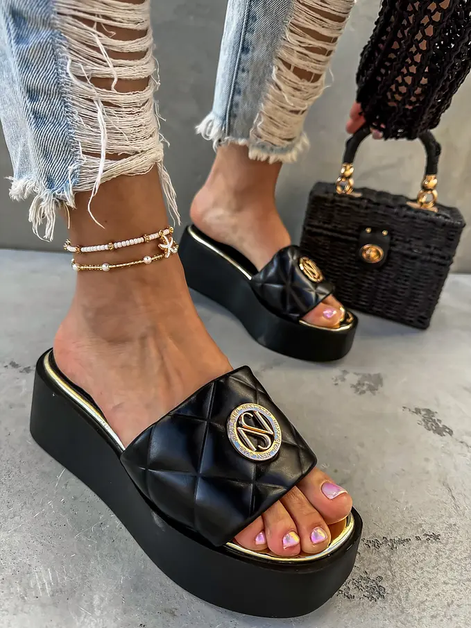 Platformové šľapky so zlatou ozdobou AMANDA-