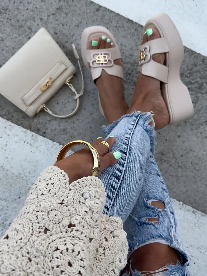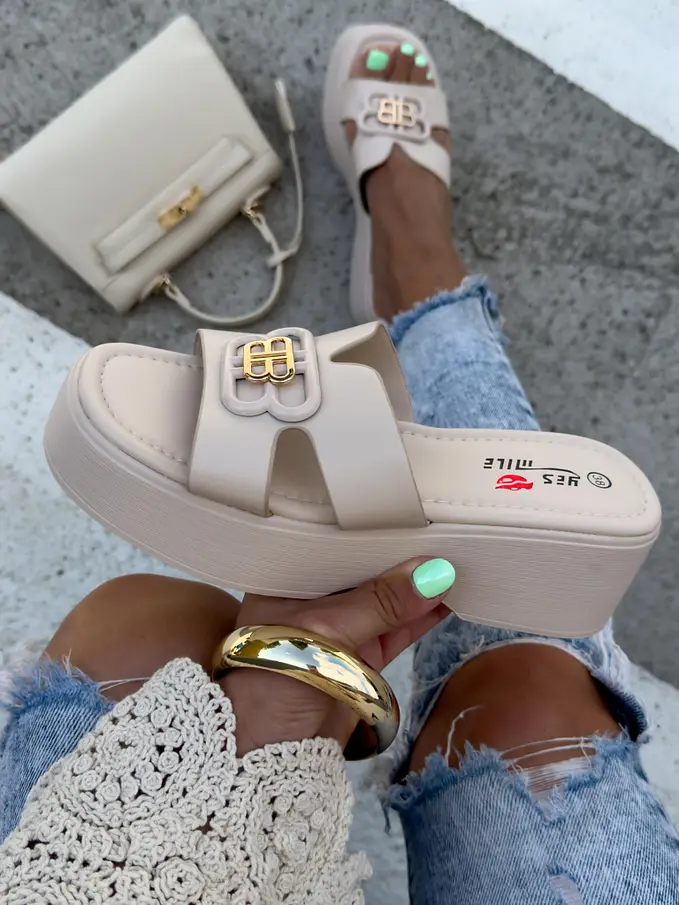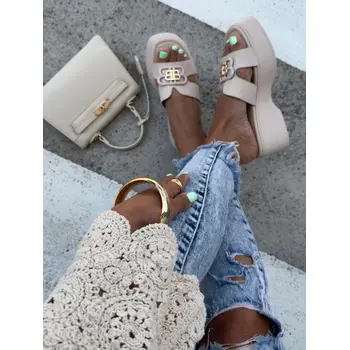 Platformové šľapky so zlatou ozdobou ORIANA-
