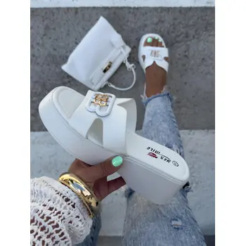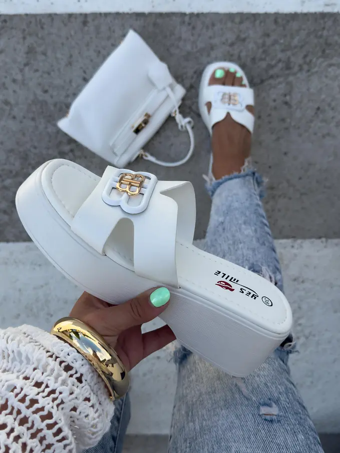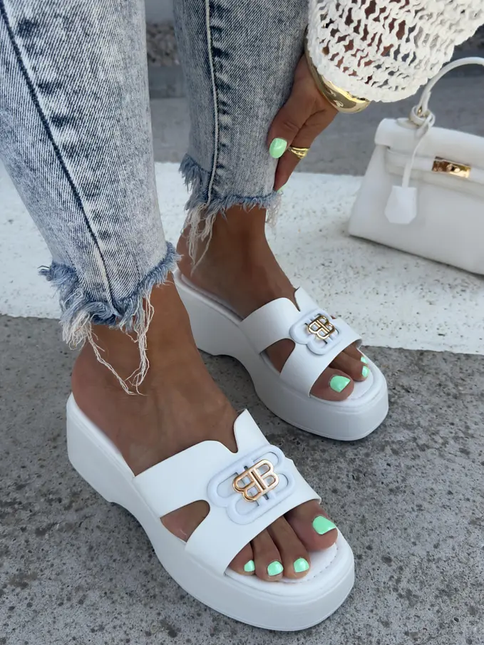 Platformové šľapky so zlatou ozdobou ORIANA-