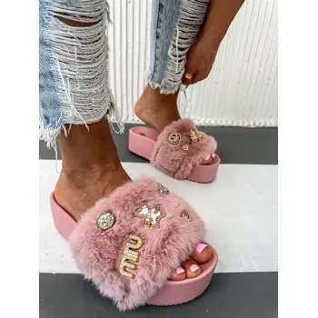 Platformové šľapky so zlatými ozdobami BABINA-