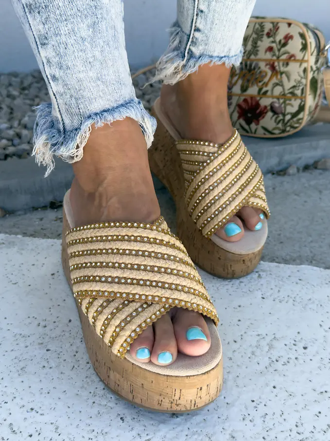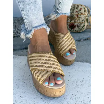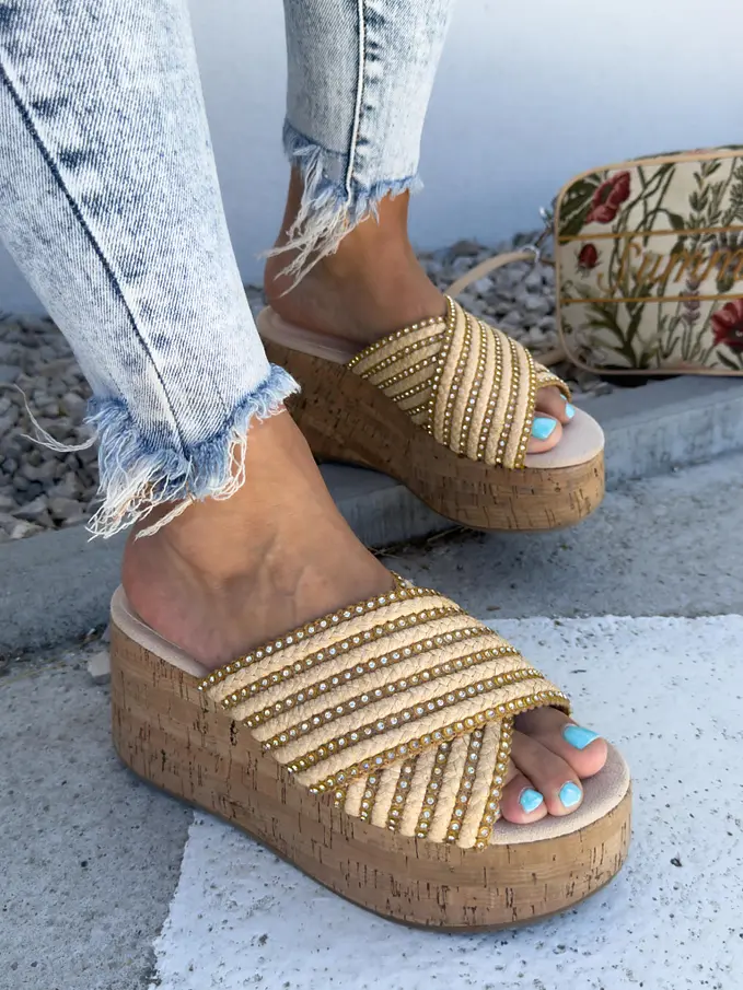 Platformové šľapky zdobené kamienkami MADONA-