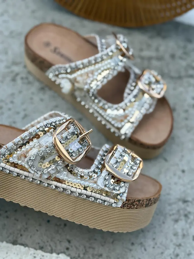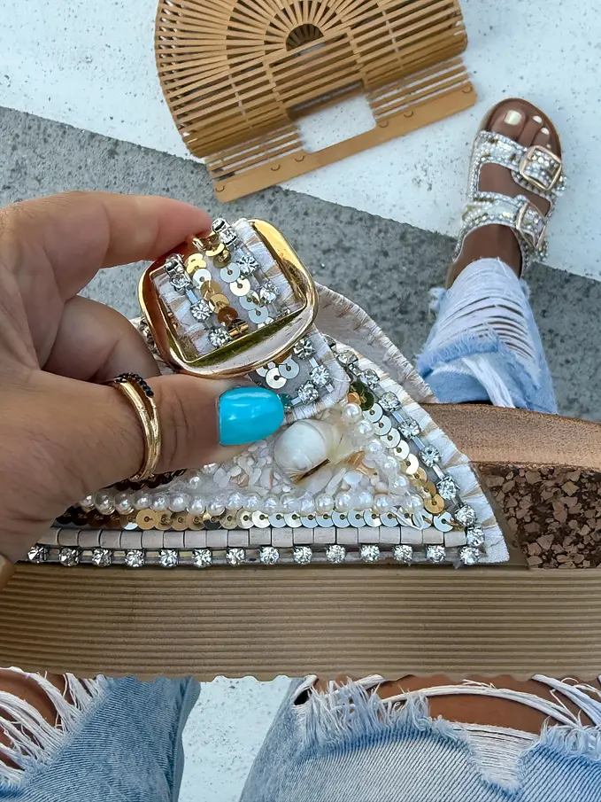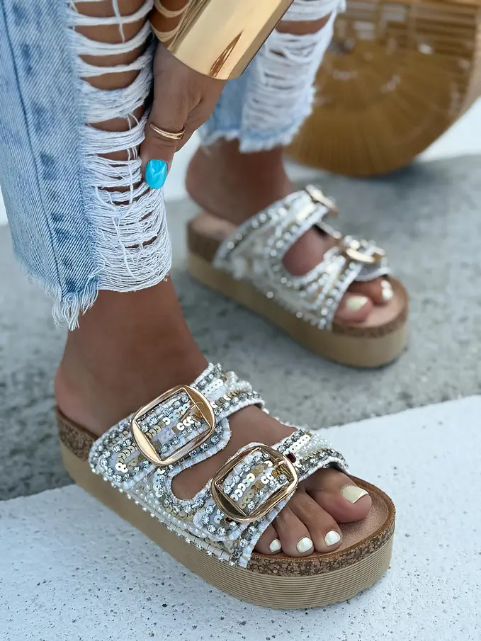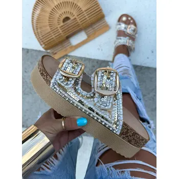 Platformové šľapky zdobené mušľami JESSICA-