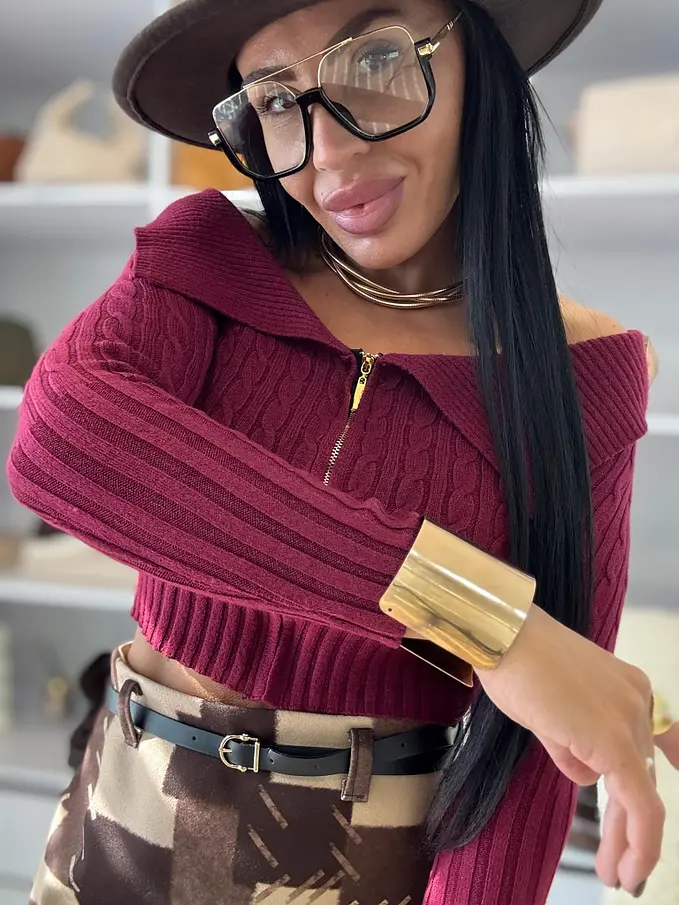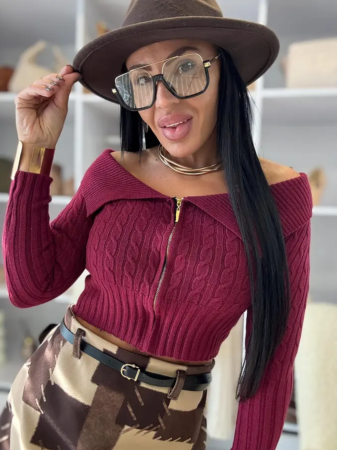 Materiál je elastický. Má dlhé rukávy a zapínanie vpredu na zlatý zips.