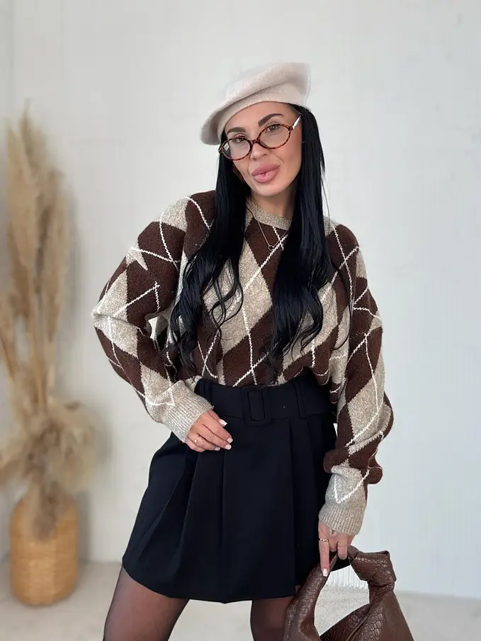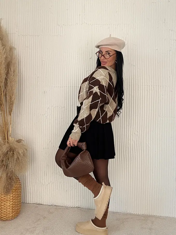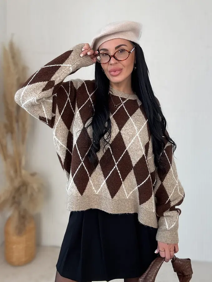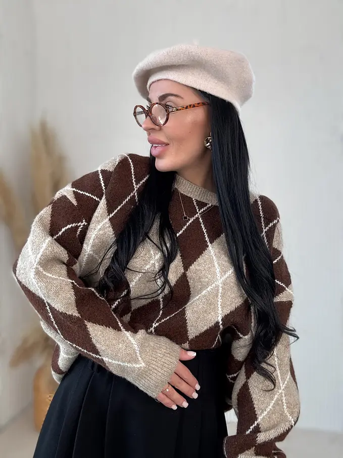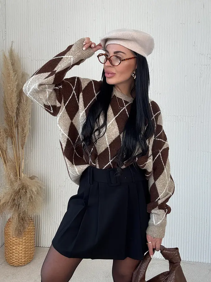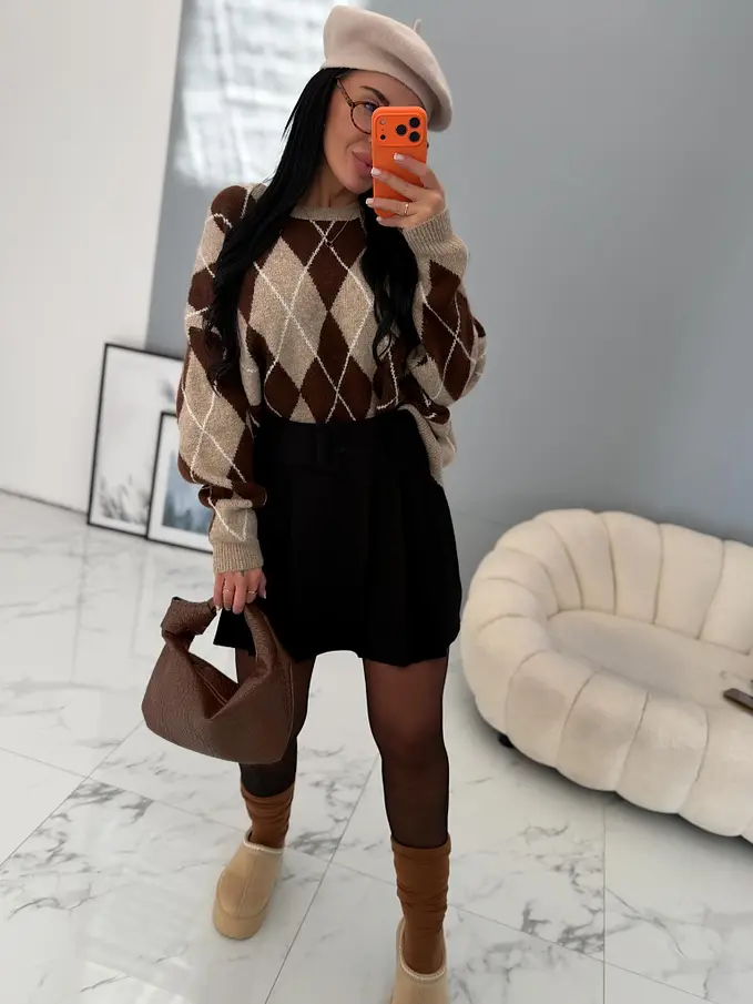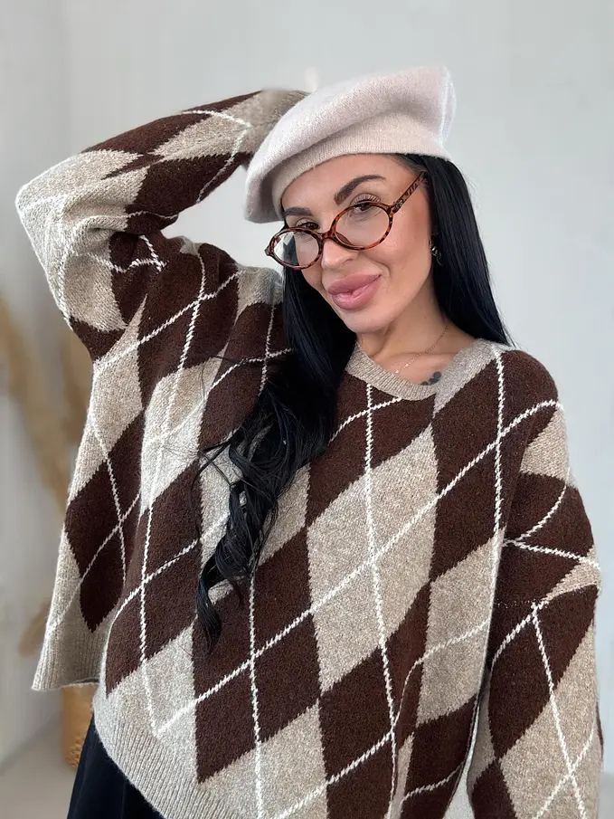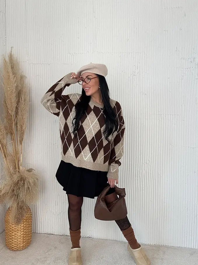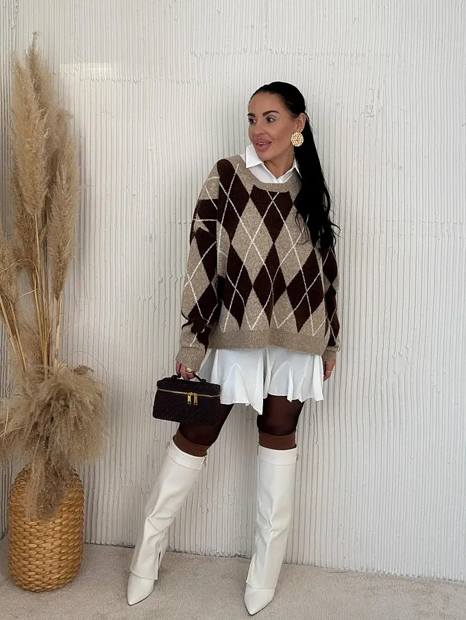 Pletený károvaný pulóver ADAVNA