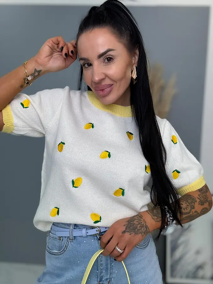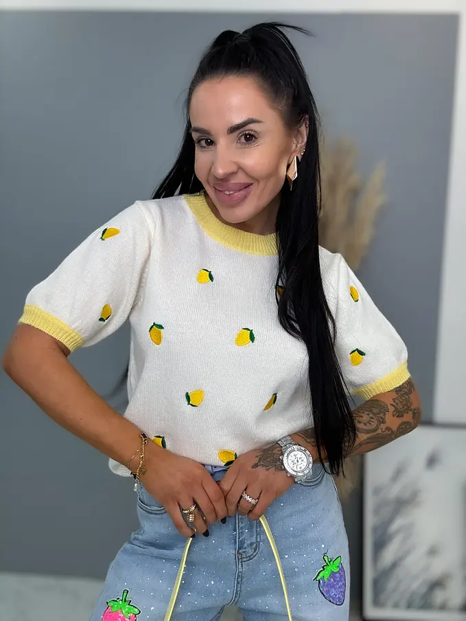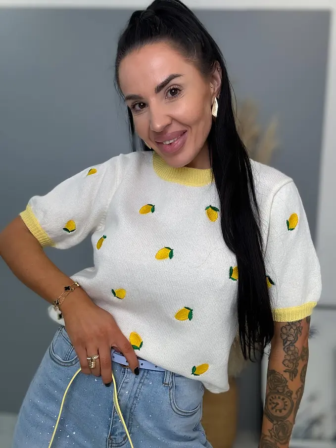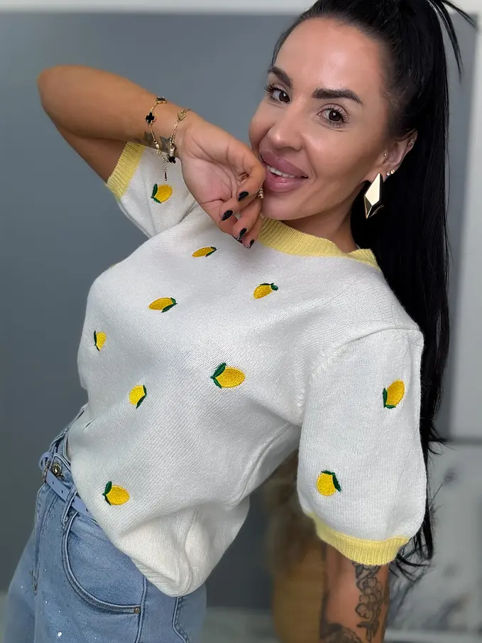 Pletený pulóver s vyšívanými citrónmi CITRONA