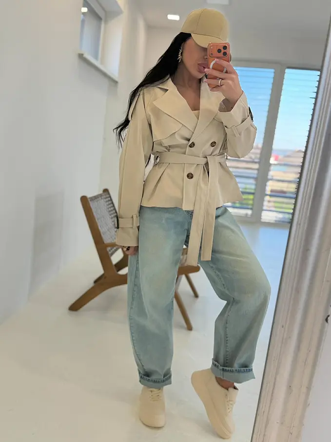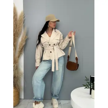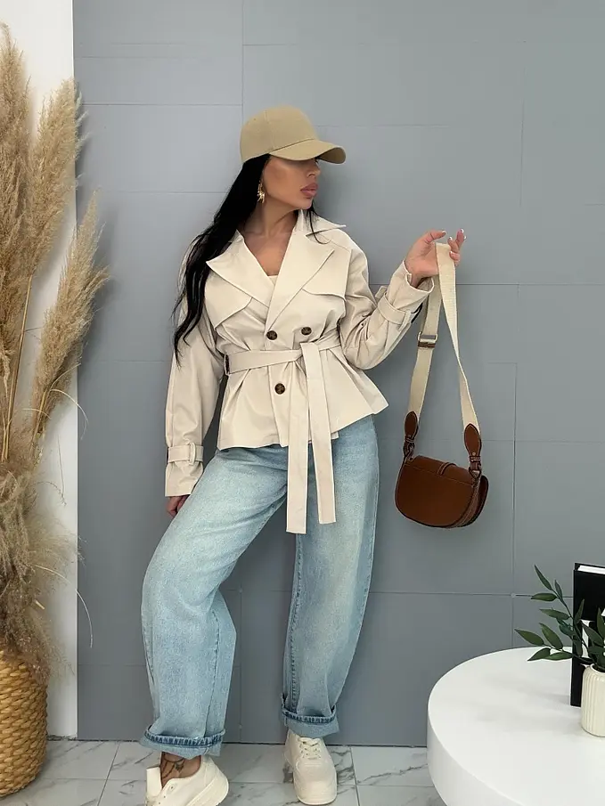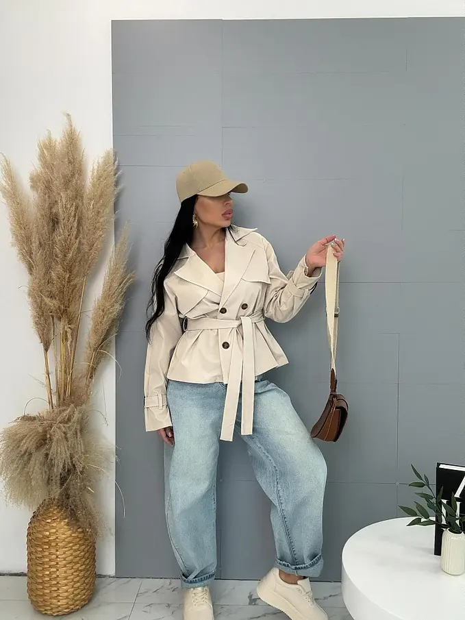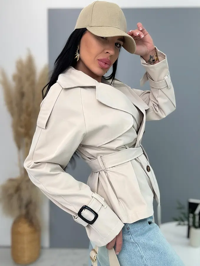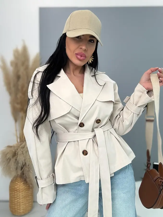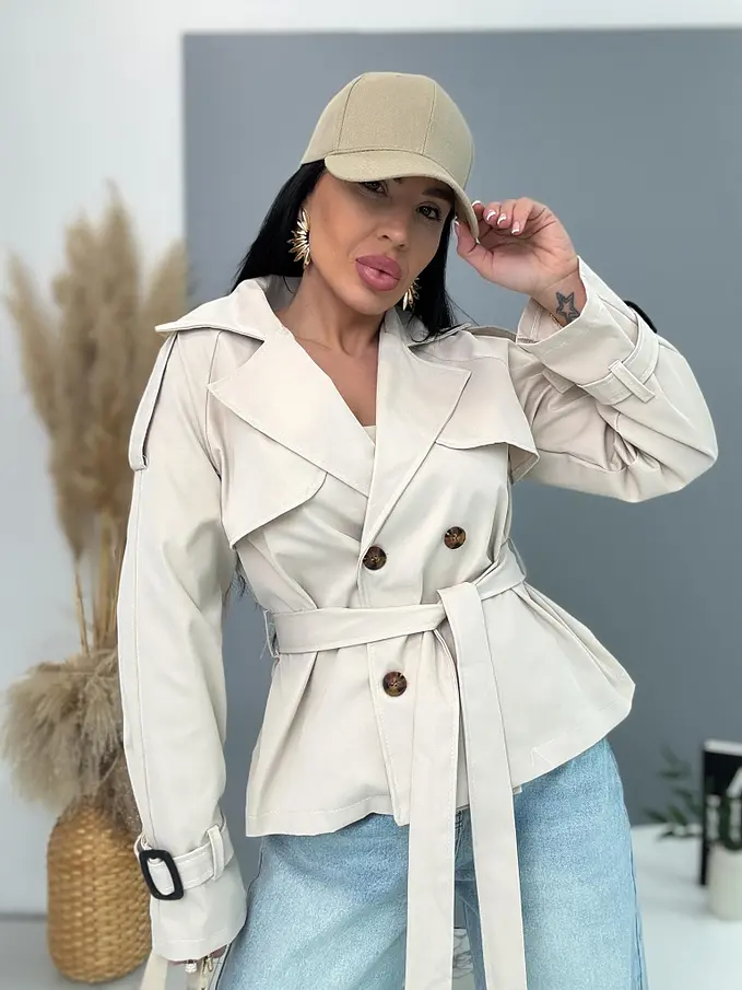 Kabát je vyrobený z príjemného materiálu. Material je veľmi jemne elastiský. S opaskom. Bez podšívky.