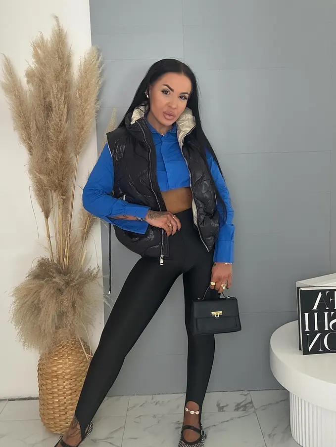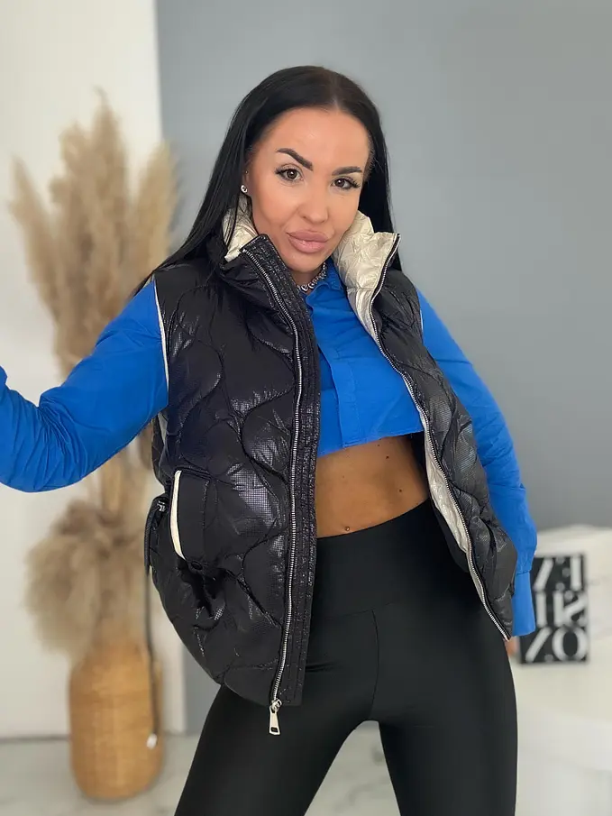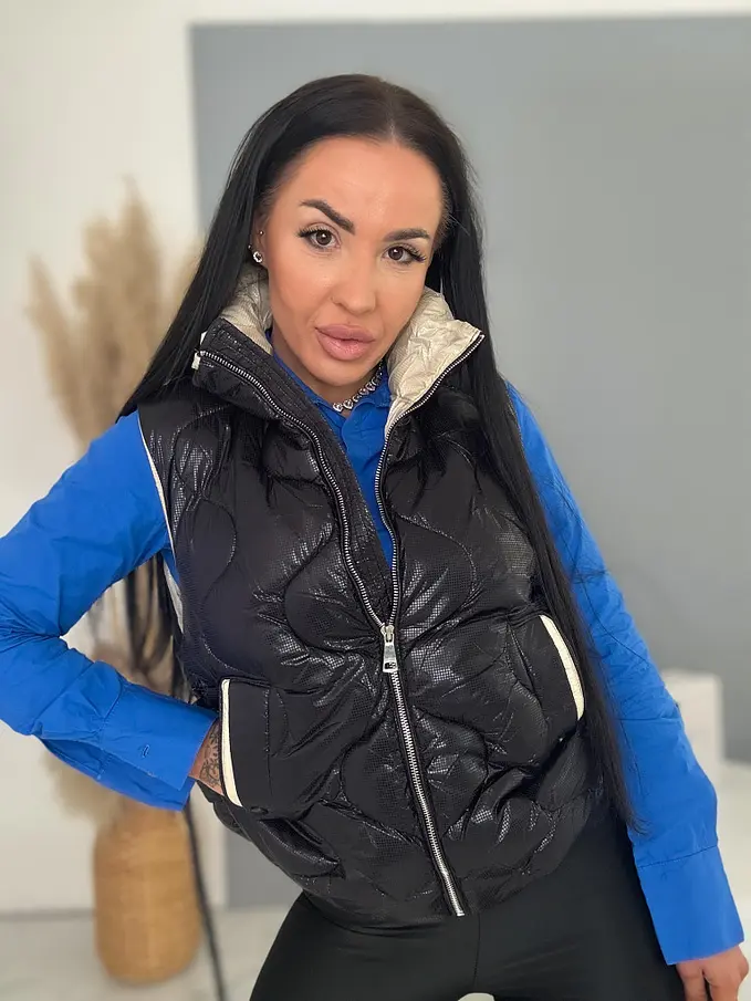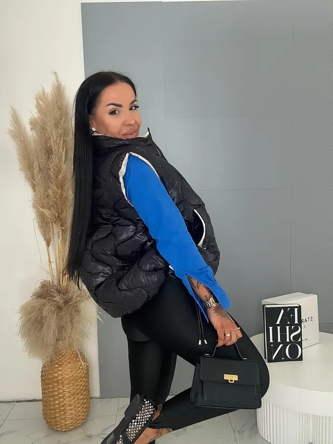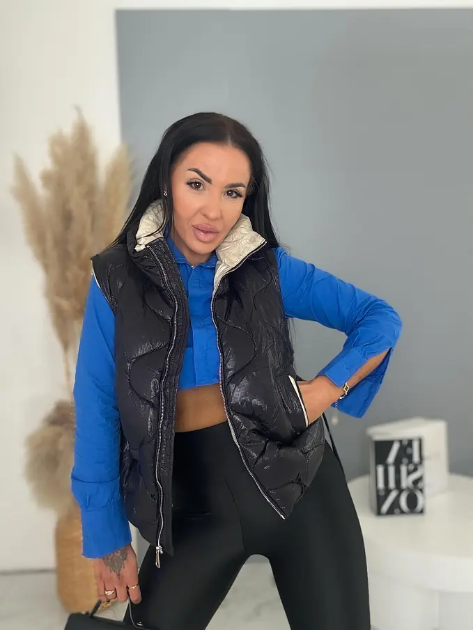 Prémium kvalita. Vesta je vyrobená z príjemného materiálu. Zips má zlatú farbu.