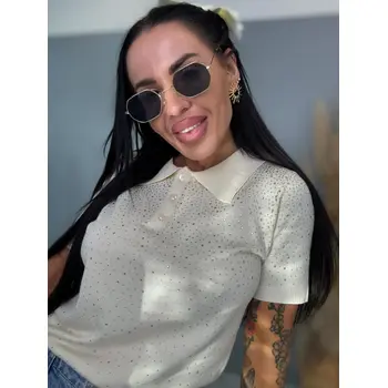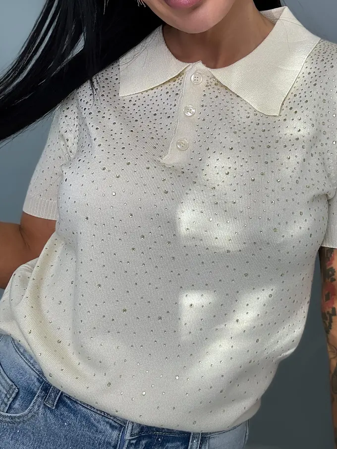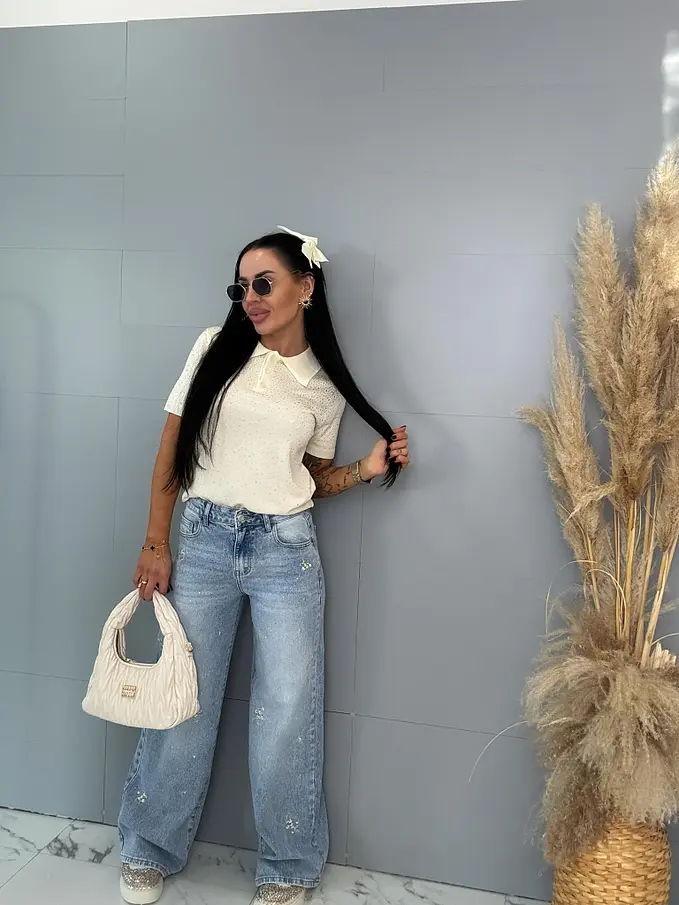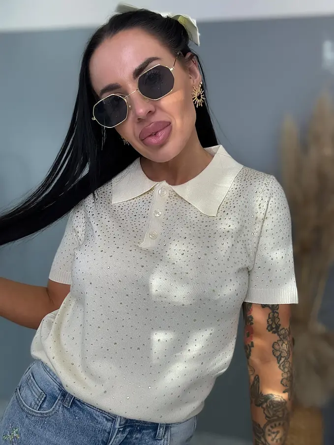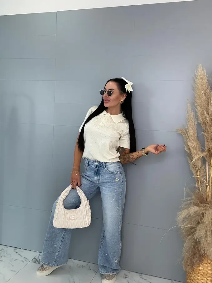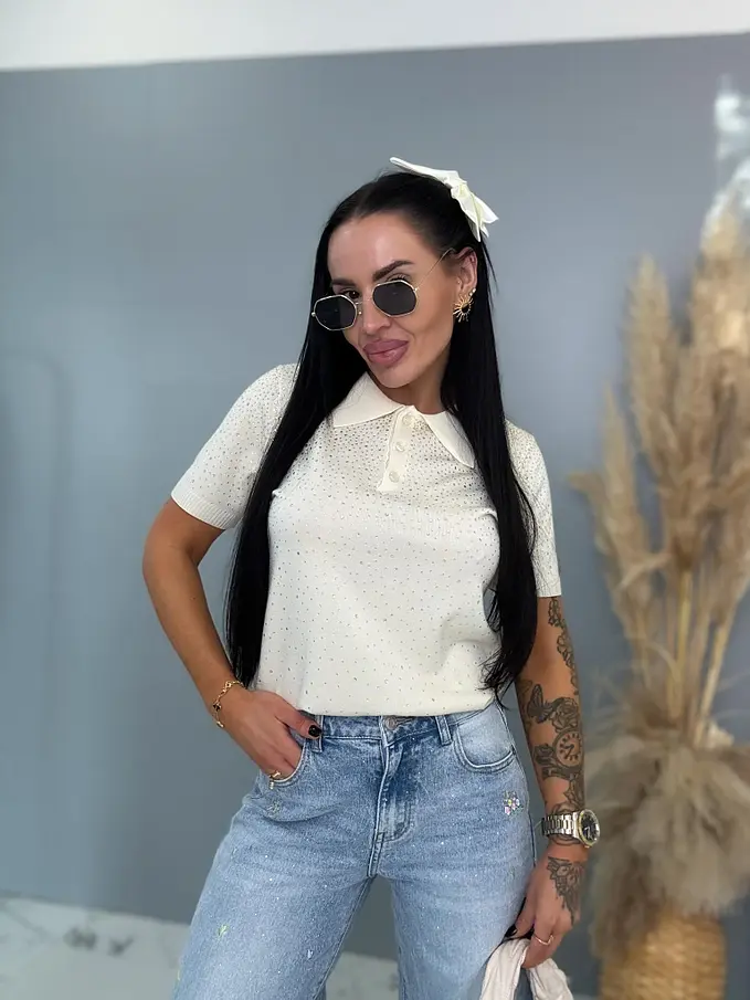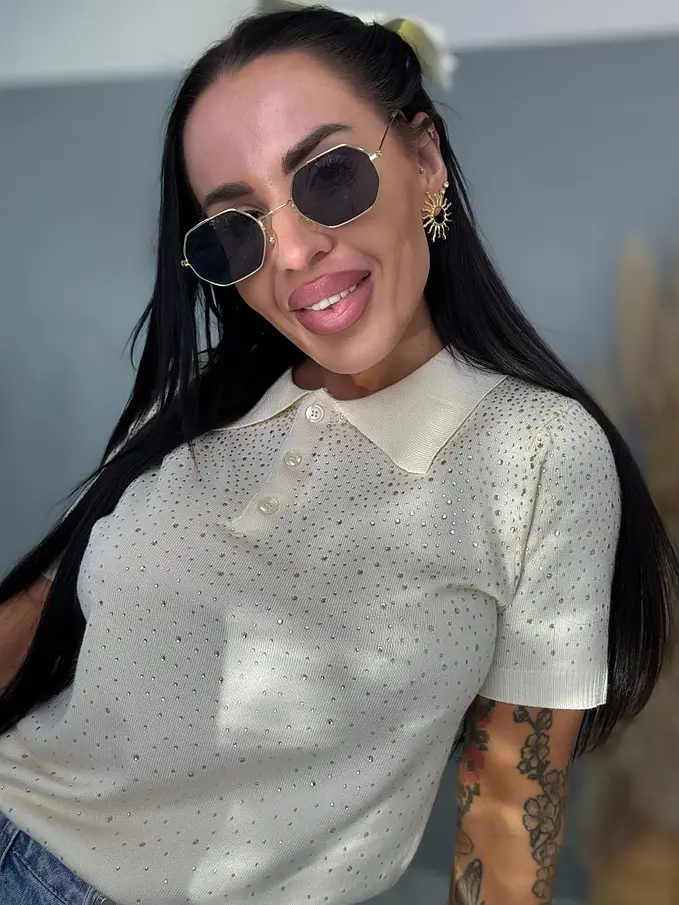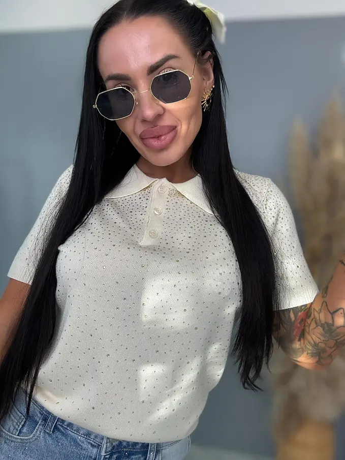 Pulóver s gombíkovou légou zdobený kamienkami LUCIE